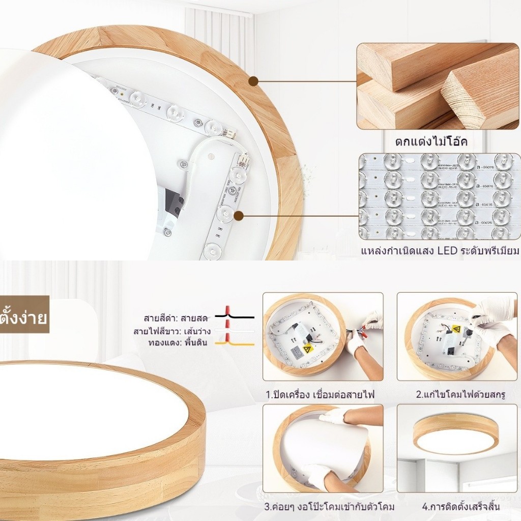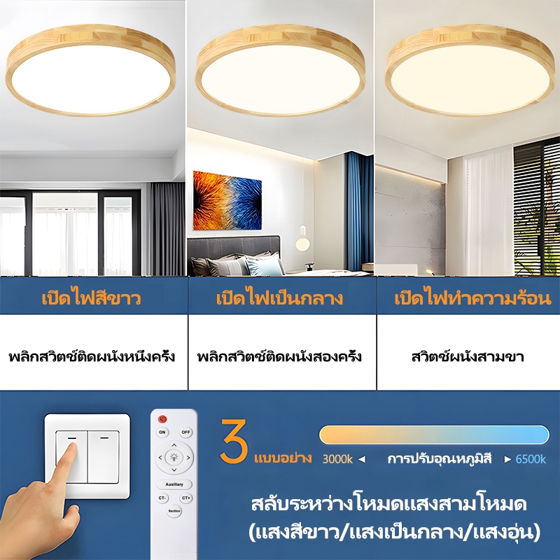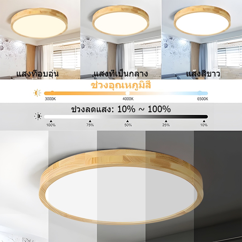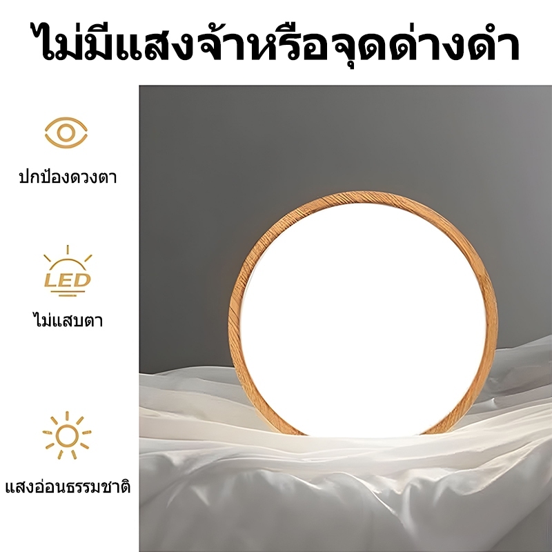 GOGEOUS【รับประกัน10ปี】โคมไฟเพดาน LED ไฟเพดาน ทำด้วยไม้ 40/50/30/23CM ไฟ3สี (3000K/4000K/6500K) หรี่แสงได้ พร้อมรีโมตคอนโทรล โคมไฟเพดาน แบบไม้ ไฟห้องนอน โคมไฟเพดานมินิมอล โมเดิร์น สําหรับห้องนอน ห้องนั่งเล่น ตกแต่งบ้าน ไฟติดเพดาน
