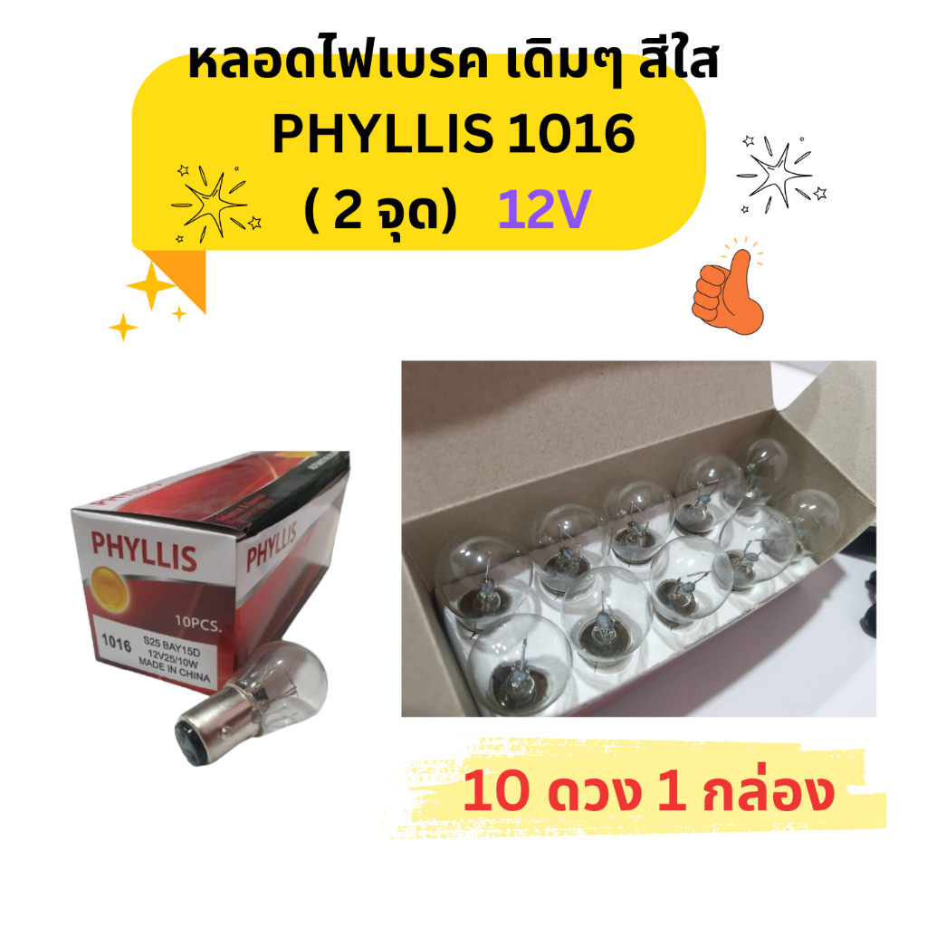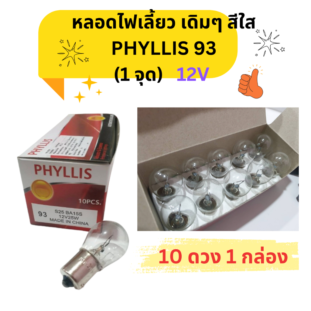 หลอดไฟเลี้ยว ไฟเบรค รถยนต์ มอเตอร์ไซต์ สีใส เดิมๆติดรถ Phyllis 93, 1016 (ราคาต่อกล่อง 10 ดวง)