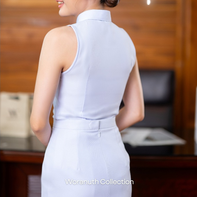 เสื้อคอปก ตัวในชุดปกติขาว เสื้อแขนกุด ชุดพิธีการ ผ้าขาวโอโม่ ใส่สบาย พร้อมส่งนะคะ