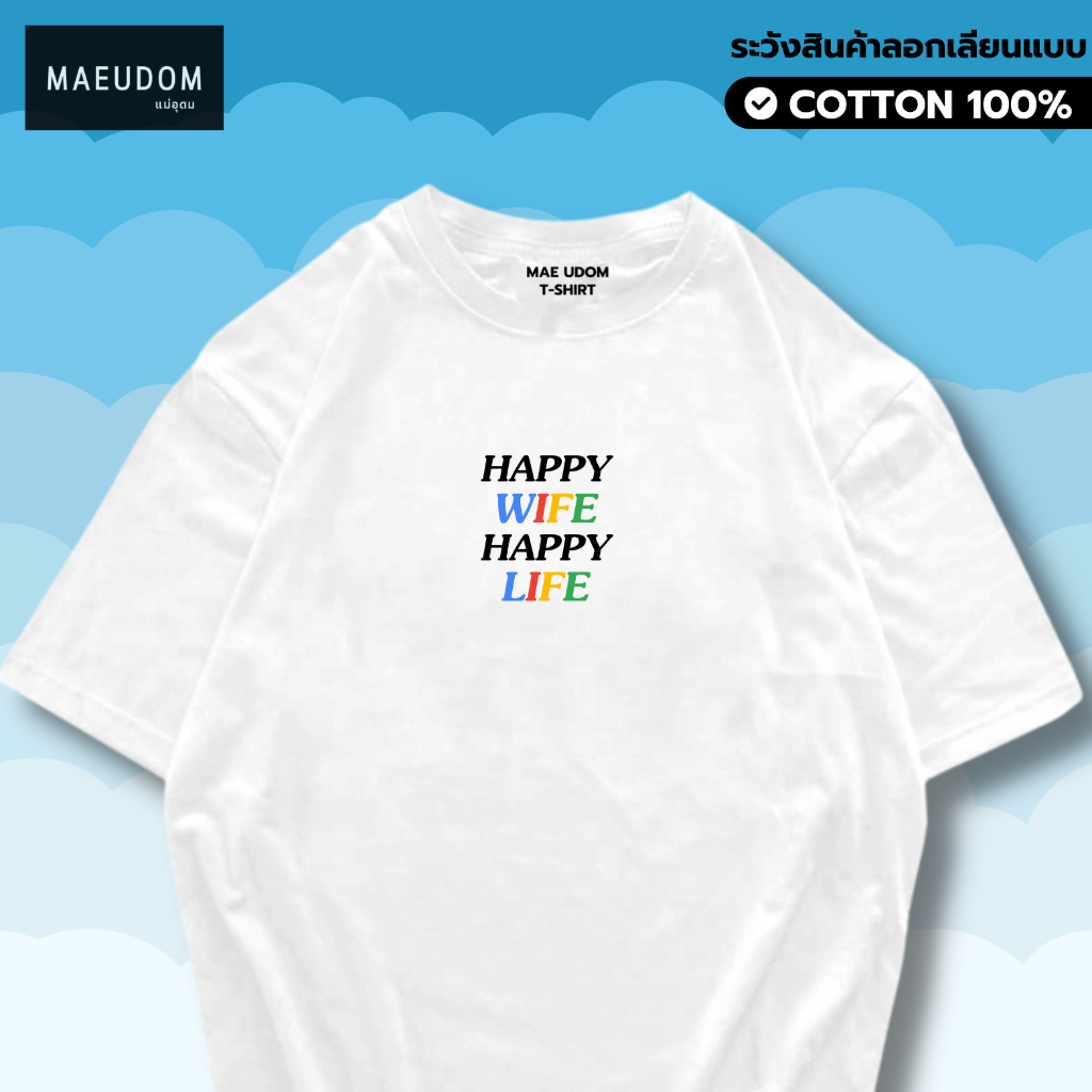 ซื้อ 5 ฟรี 1 กระเป๋าผ้า เสื้อยืด Happy wife Happy life ผ้า Cotton 100% และ เนื้อผ้า Signature เฉพาะแบรนด์ MAE UDOM