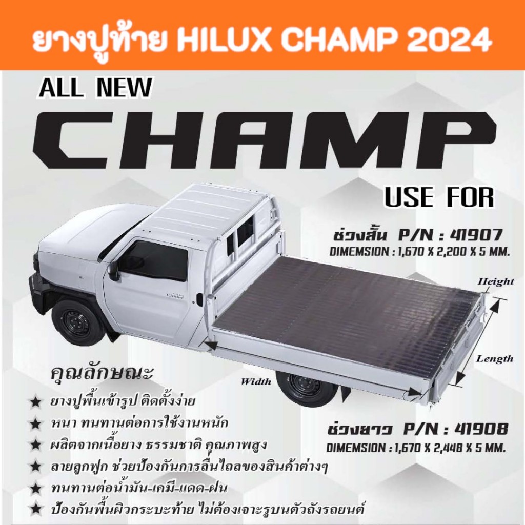 ยางปูพื้นท้ายกระบะ ยางปูท้ายช่วงยาว TOYOTA HILUX CHAMP 2024 ช่วงล้อสั้น / ช่วงล้อยาว PARAMAT
