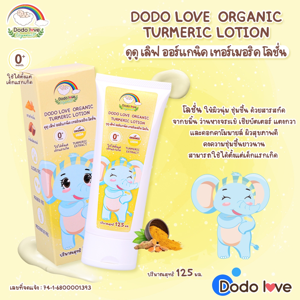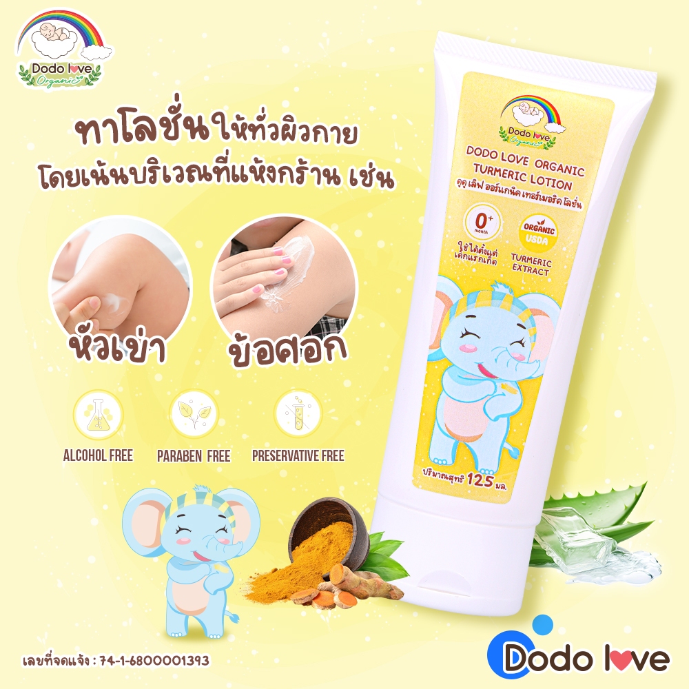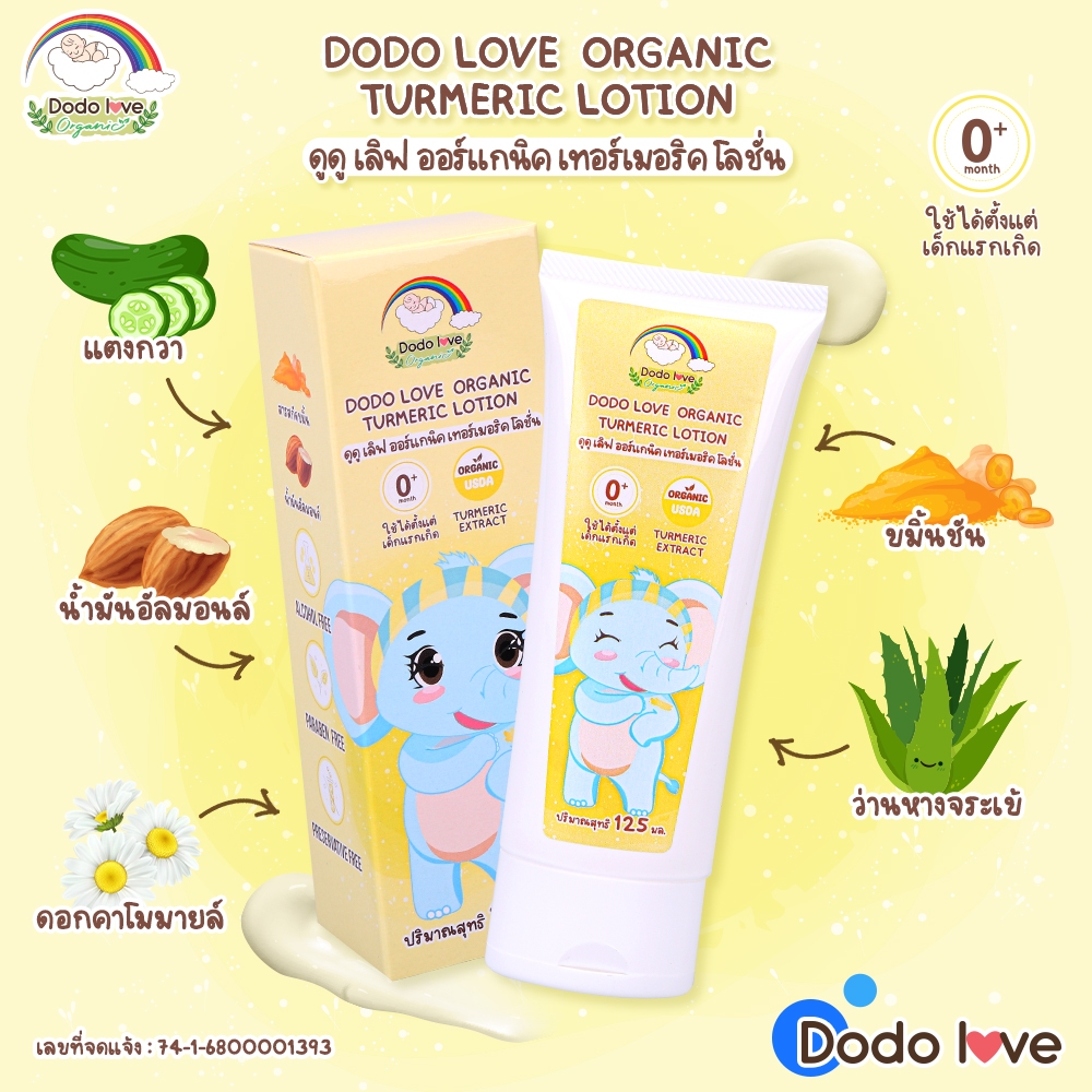DODOLOVE Organic เทอร์เมอริค โลชั่น โลชั่นขมิ้น ครีมทาผิวเด็ก ออร์แกนิก อ่อนโยนต่อผิว ใช้ได้ตั้งแต่แรกเกิด