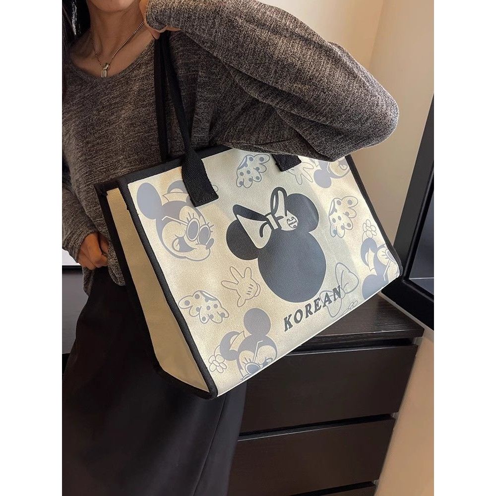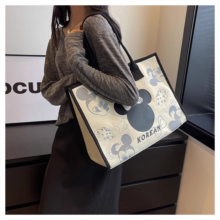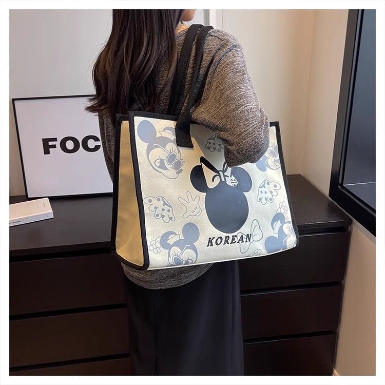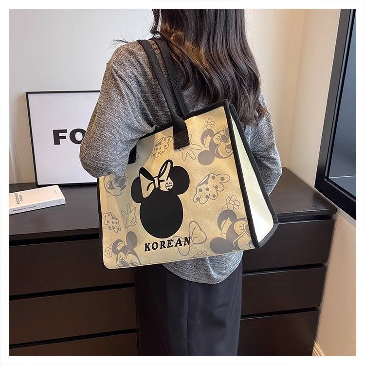 【จัดส่งจากประเทศไทย】?พร้อมส่ง? กระเป๋าสะพายไหล่ ผ้าแคนวาส ลายการ์ตูน มีซิป ทนทาน แฟชั่นสําหรับสตรี