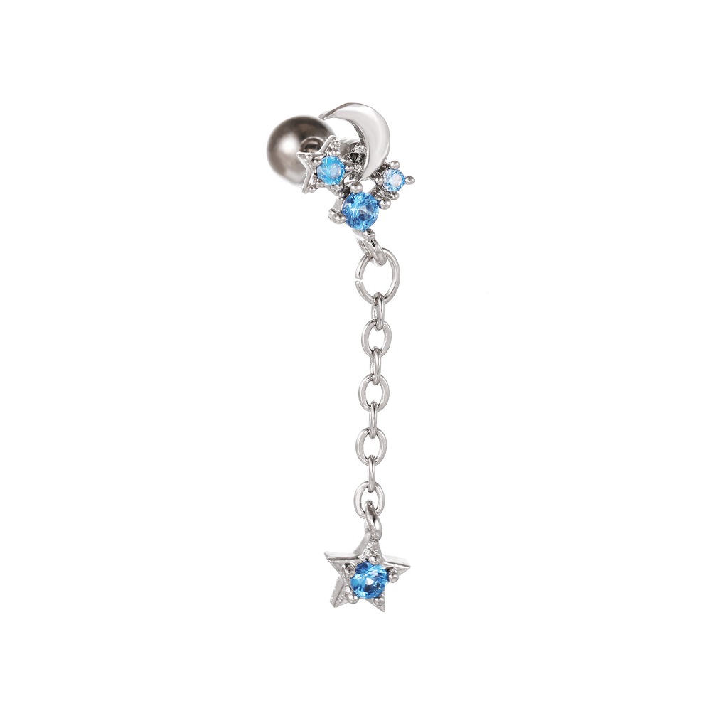 ต่างหูโซ่ เหล็กไทเทเนียม G23 จี้รูปดาว ดวงจันทร์ ประดับพู่ไพลิน คริสตัล เครื่องประดับ 1 ชิ้น