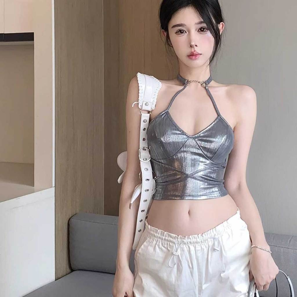 เสื้อสายเดี่ยวสีพื้น สายเดี่ยววินเทจ สีพื้นเซ็กซี่มากสำหรับปาร์ตี้