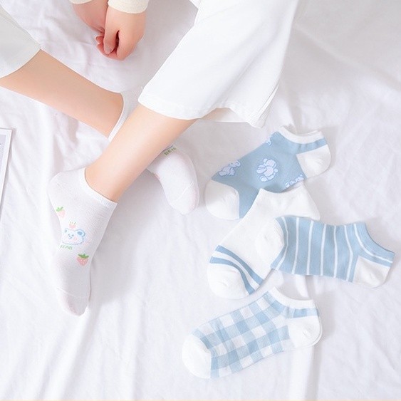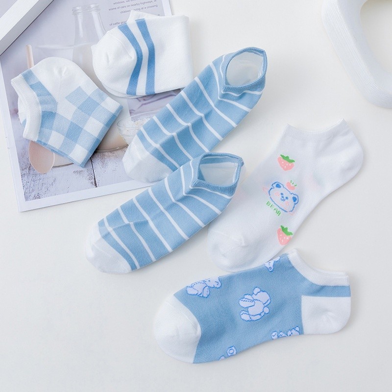 สินค้า : ถุงเท้าข้อสั้น โทนสีฟ้า-ขาว ลายหมี ลายเส้น ลายตาราง ลุคสาวหวาน เนื้อผ้านิ่ม ใส่ทำงาน ใส่เที่ยวได้