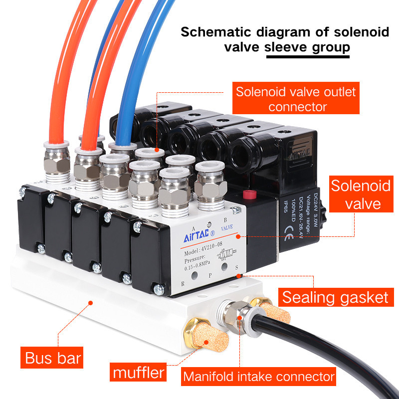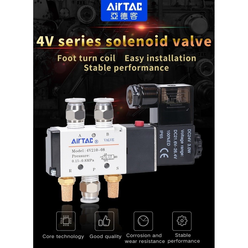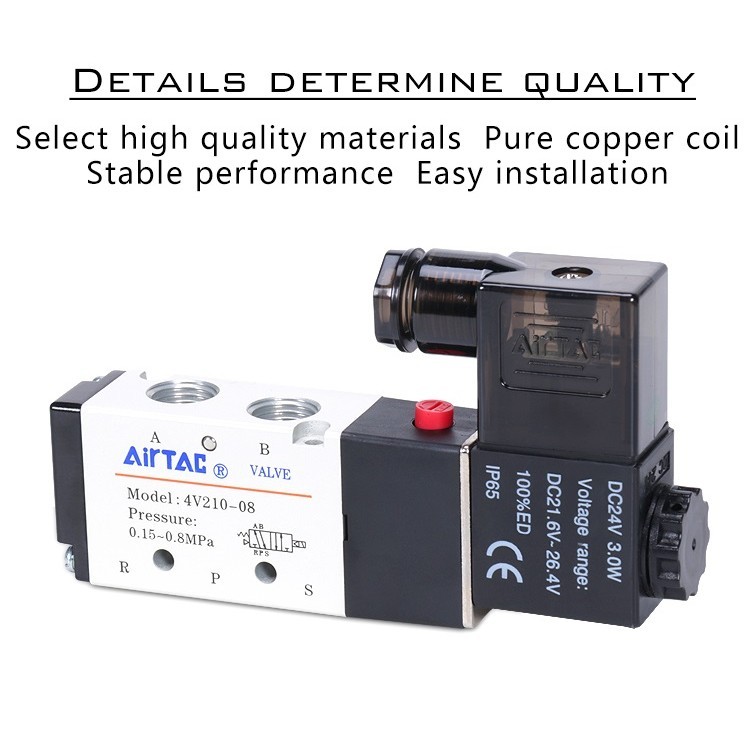 Airtac 4v210-08 4v310-10 220V วาล์วควบคุมขดลวดแก๊สอิเล็กทรอนิกส์วาล์วควบคุมอากาศโซลินอยด์วาล์ว 24 V