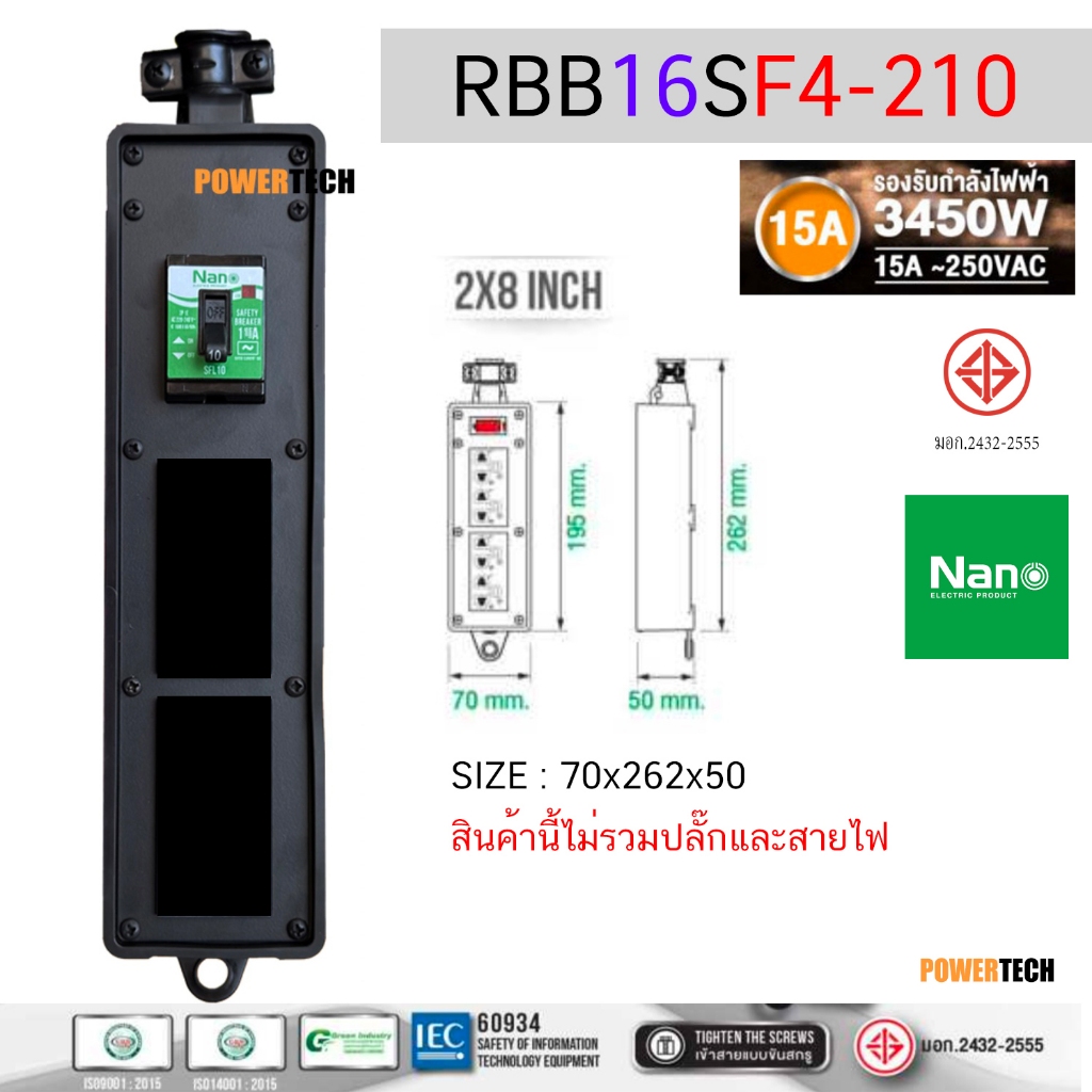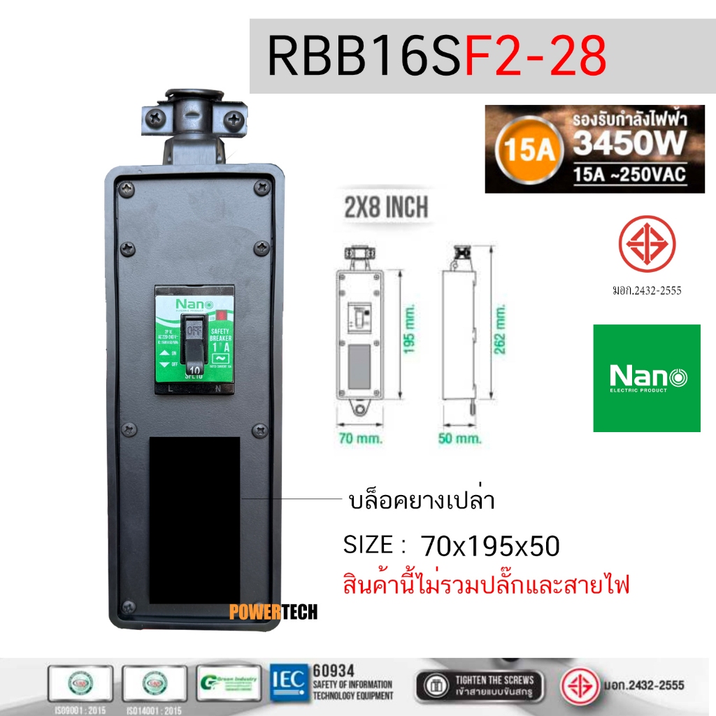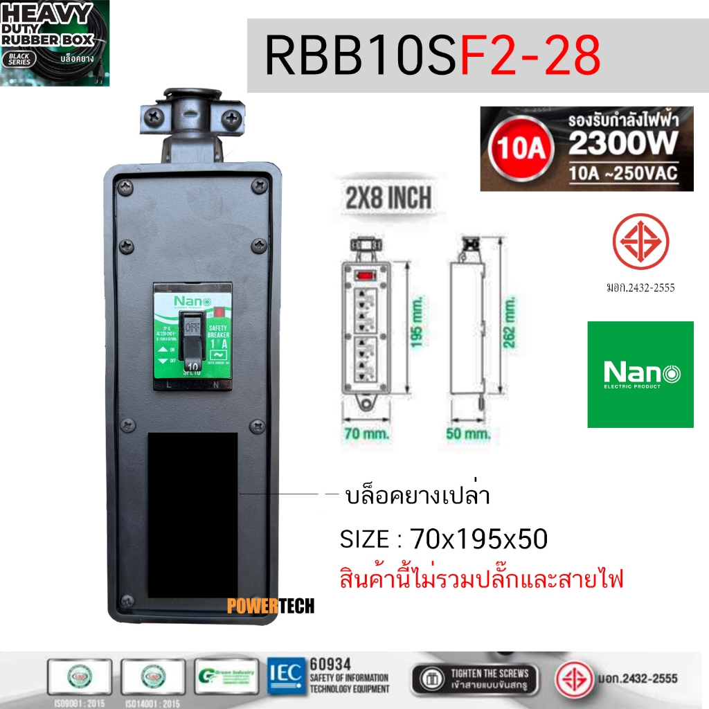 บล็อคยาง บ็อคยาง เปล่า ใส่ เต้ารับได้ มี SAFETY BREAKER 15A 2300Watt 15A 3450W ไม่มีสายไฟ RBB10FS2-28 ,RBB10FS4-210