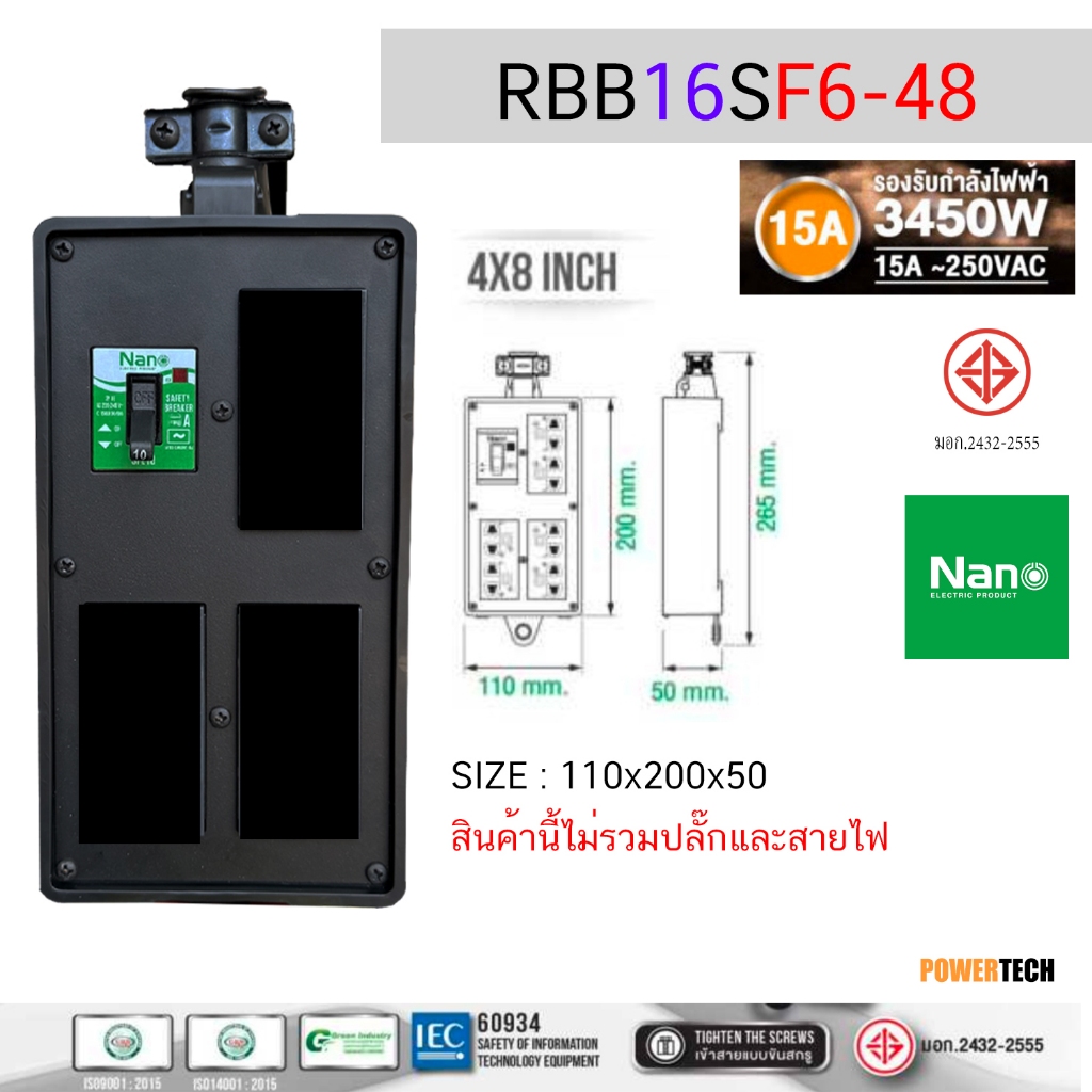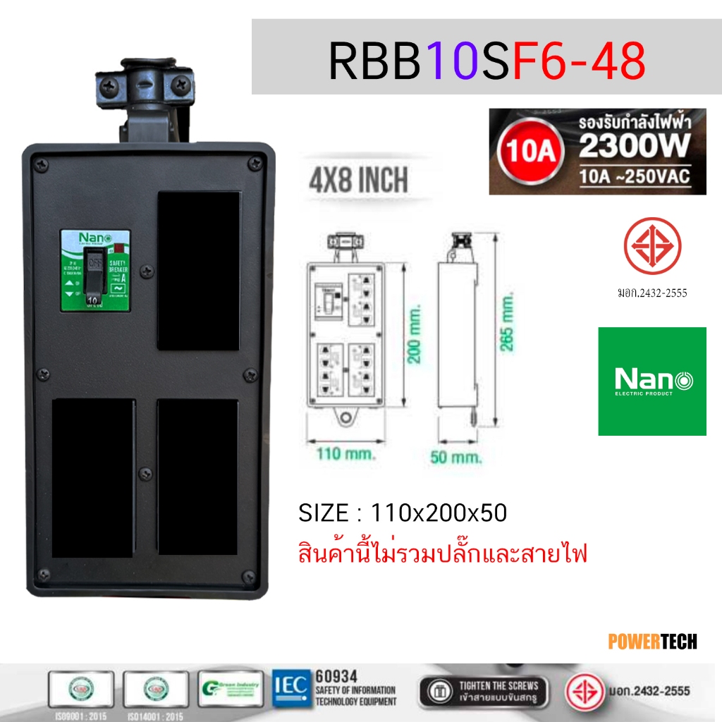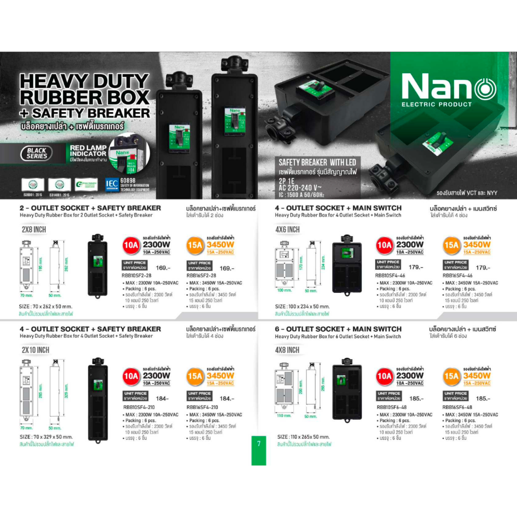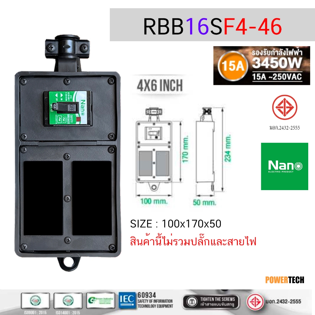 บล็อคยาง บ็อคยาง เปล่า ใส่ เต้ารับได้ มี SAFETY BREAKER 15A 2300Watt 15A 3450W ไม่มีสายไฟ RBB10FS2-28 ,RBB10FS4-210