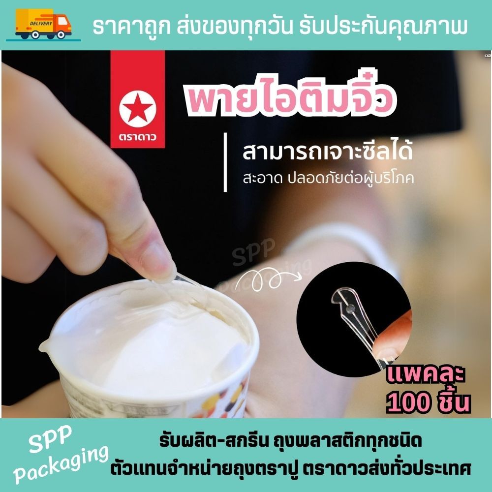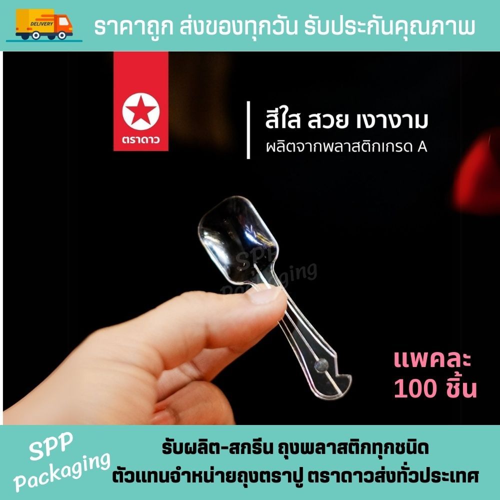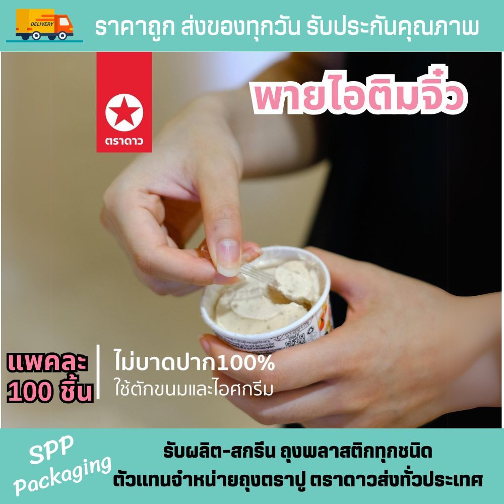 [ยกหิ้ว10แพค] ช้อนพายจิ่ว ตราดาว ช้อนไอติม ใส เกรดA แพค100ชิ้น ปลายมีที่ตัดซีล