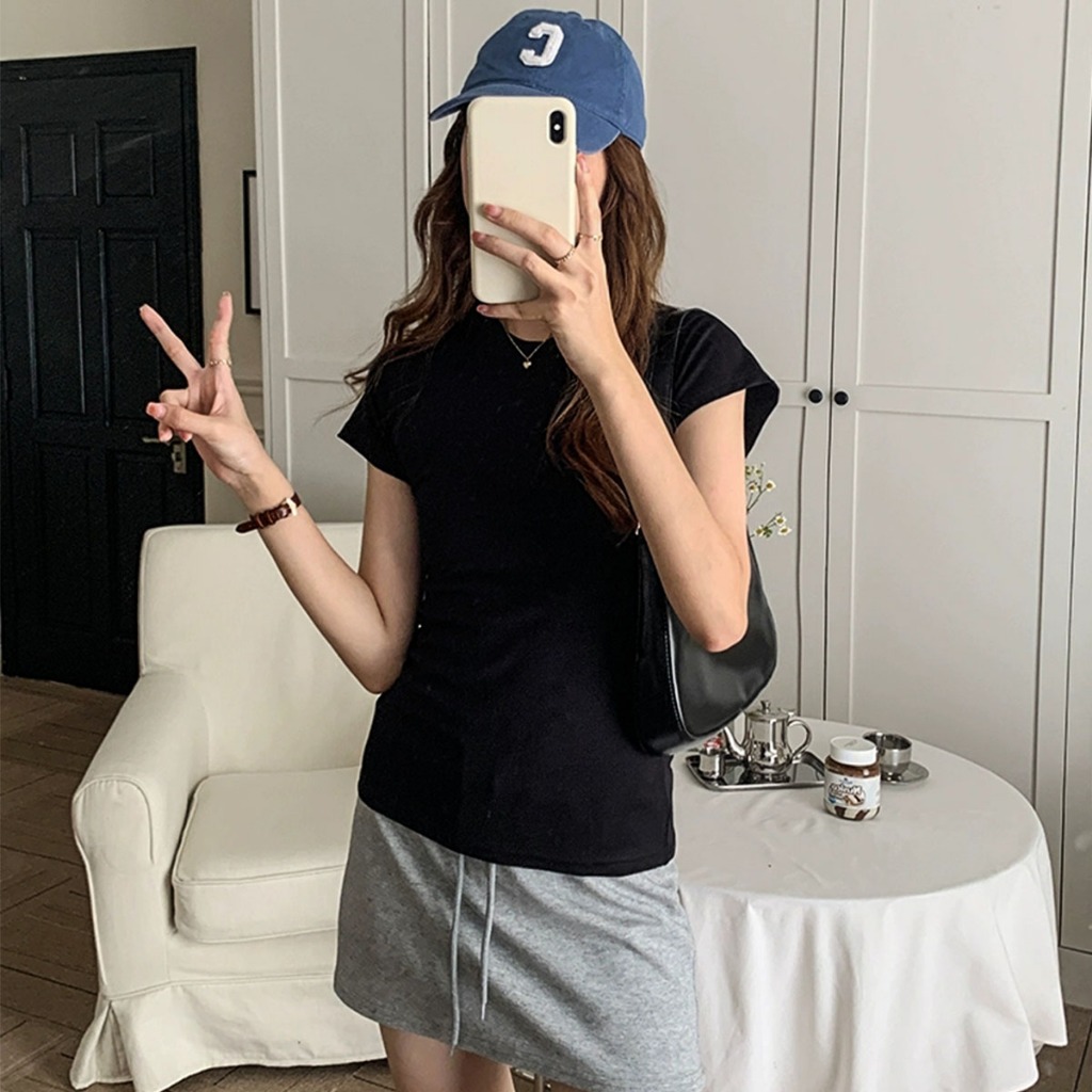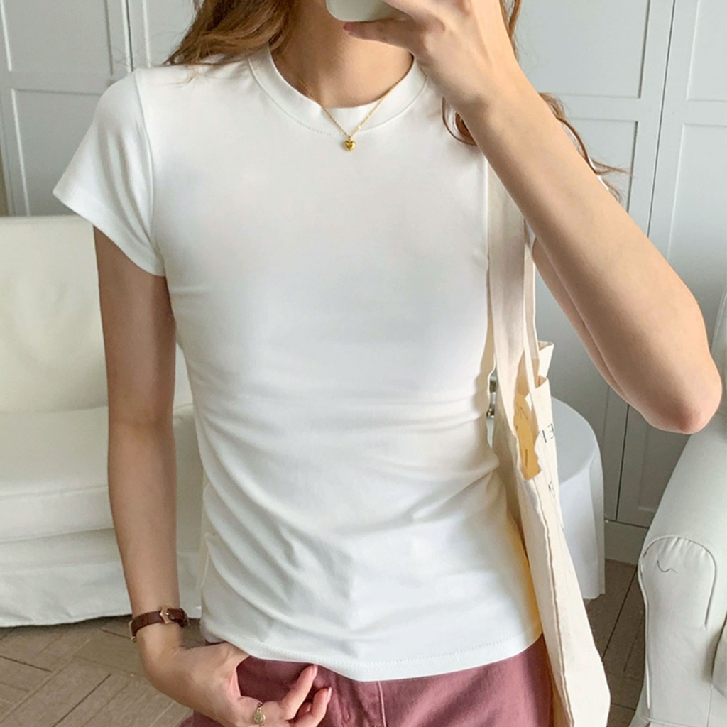 เสื้อยืดสุภาพสตรีพื้นฐานแขนสั้นคอกลม,