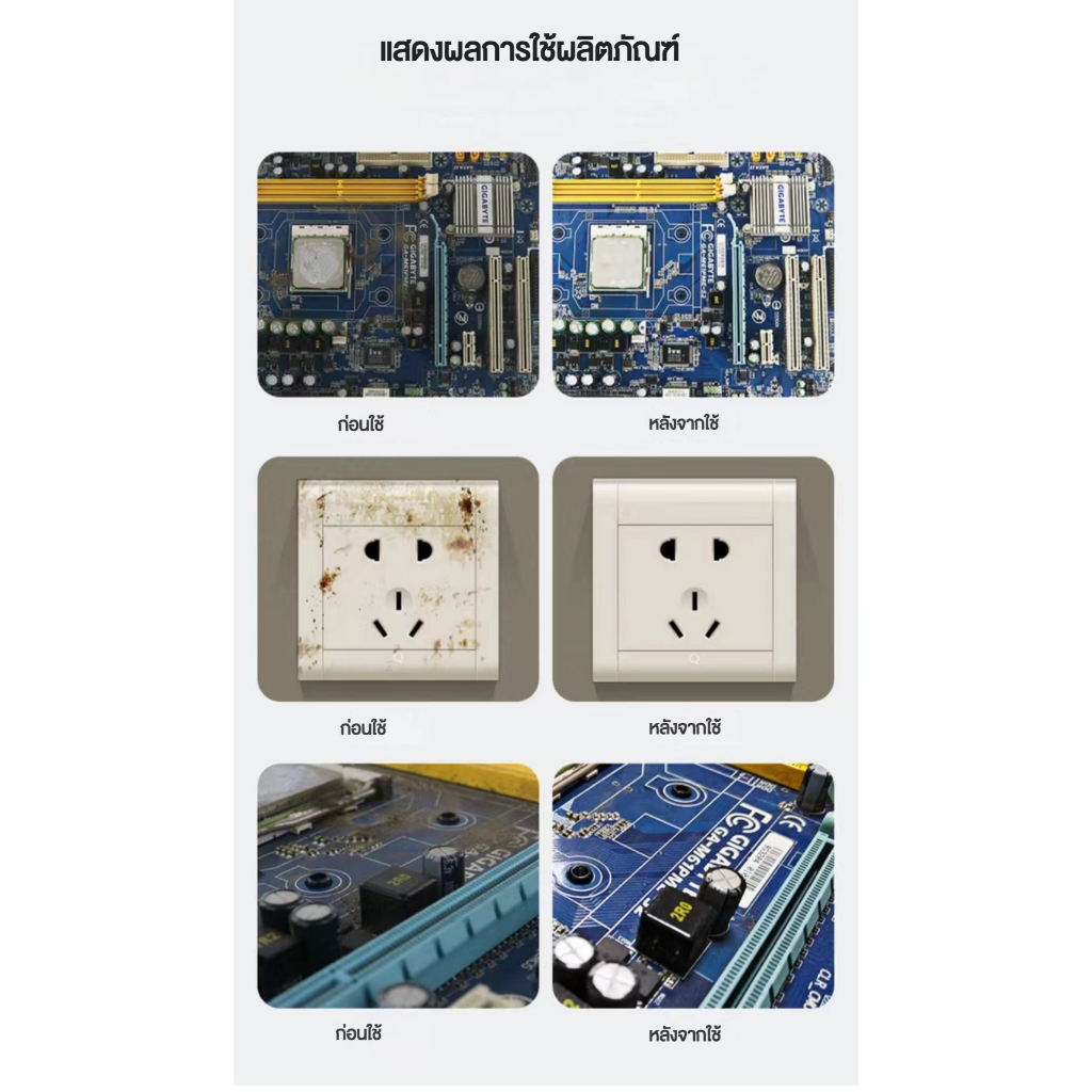 - มีประสิทธิภาพละลายสิ่งสกปรกอ ,คราบจาระบี ,คราบหล่อลื่นน้ำมัน ,ซิลิโคน ,tars ,กาวและฟลักซ์