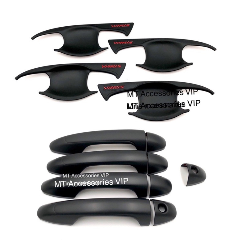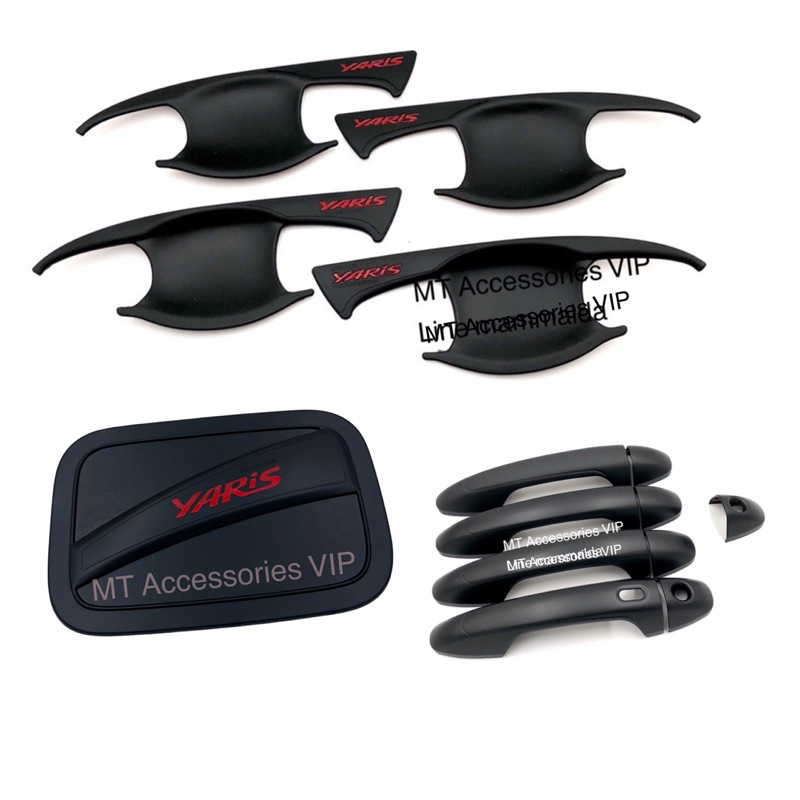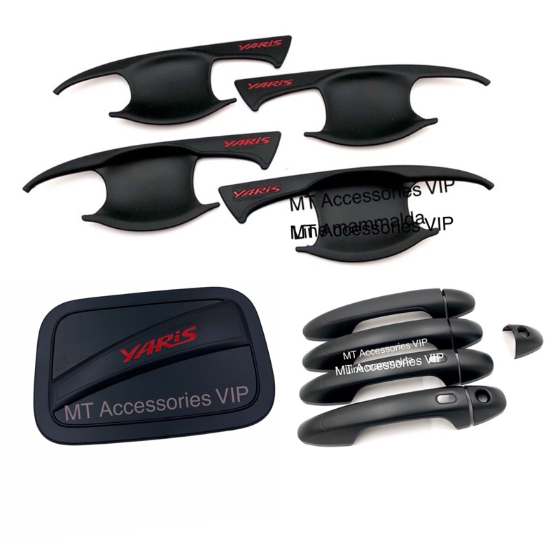 yaris ativ ปี2017-2022 รุ่น4ประตู เบ้ากันรอย ครอบมือจับ ครอบฝาถังน้ำมัน ยาริส เอทีฟ yaris ATIV ปี 2017-2022 สีดำโลโก้แดง
