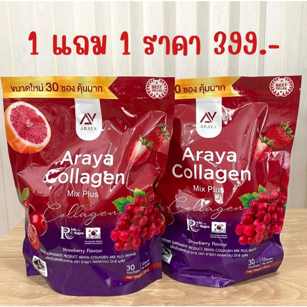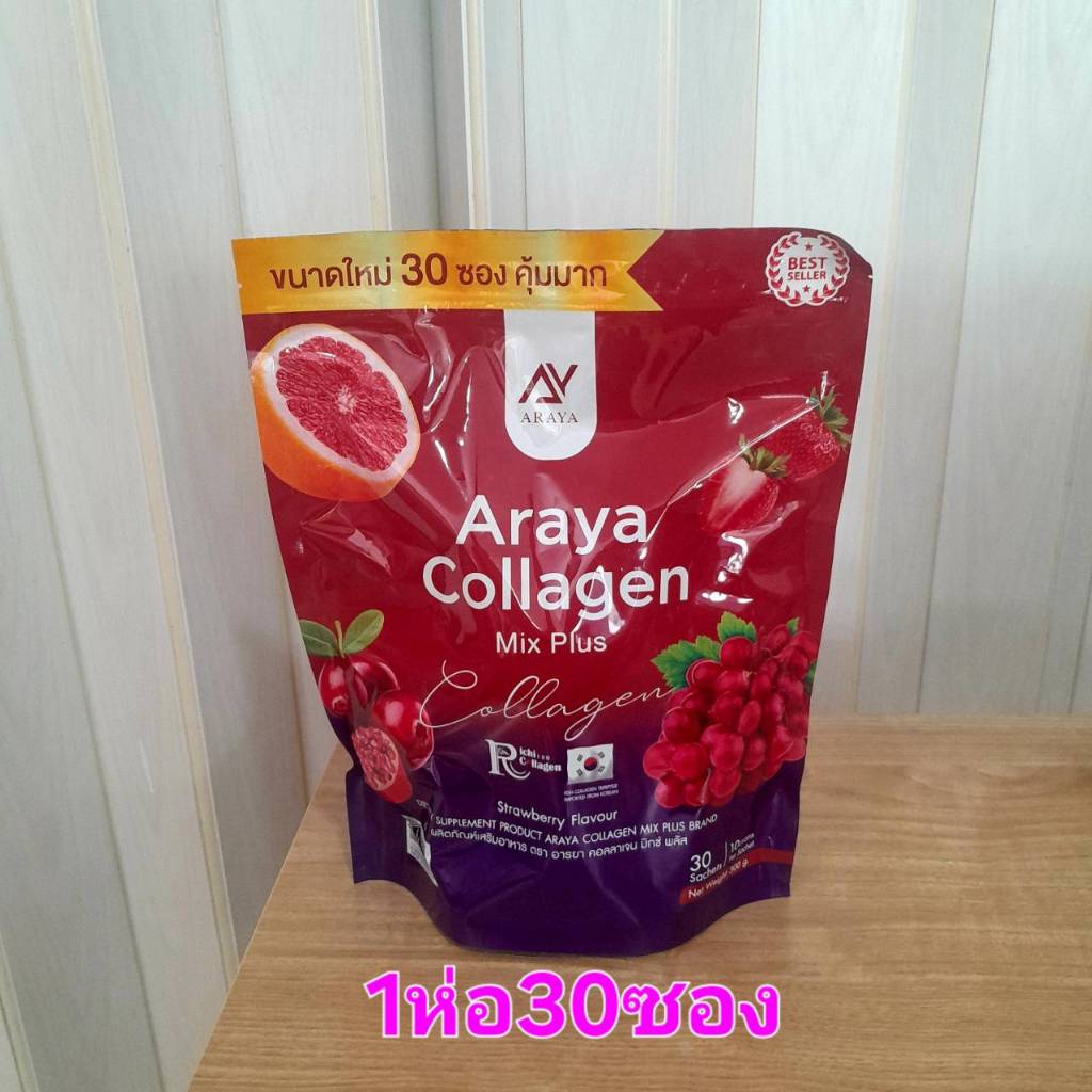 [1แถม1 ]Araya Collagen Mix Plus [1ห่อมี30ซอง] ของแท้ ผิวขาวใส ลดรอยดำ ริ้วรอย บำรุงภายในผู้หญิง ฟิต กระชับ