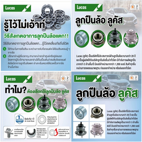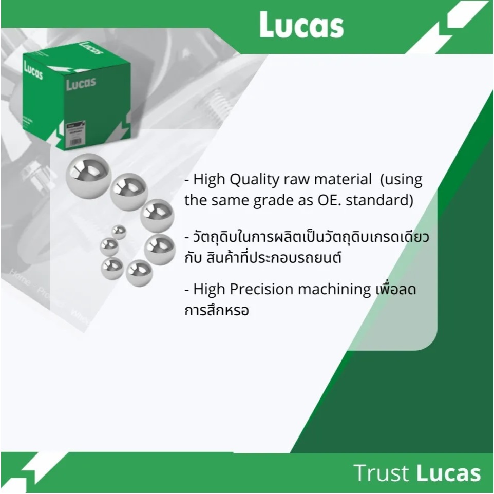 Lucas (ลูคัส) เป็นบริษัทที่มีประสบการณ์ด้านลูกปืนล้อมานานกว่า 20 ปี และเป็นผู้ผลิตให้กับบริษัทลูกปืนล้อชั้นนำทั่วโลก