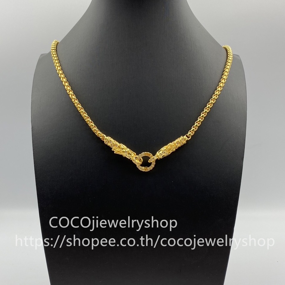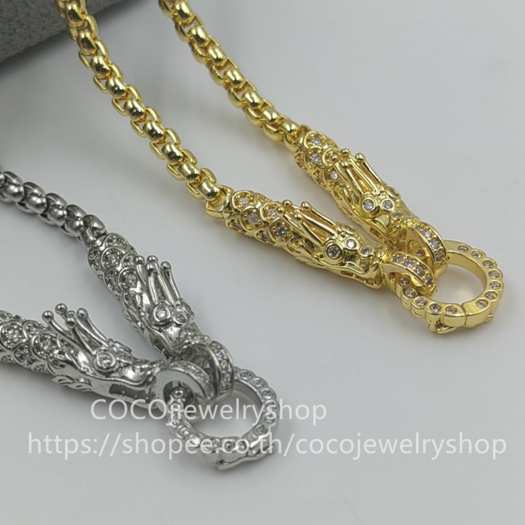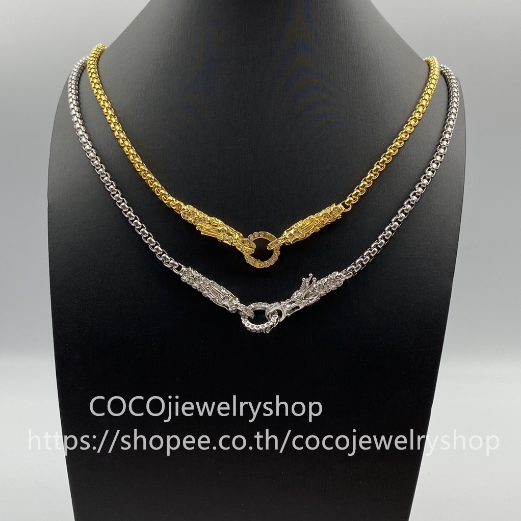 สร้อยคอมังกรสี18K ไม่ลอกไม่ดำ สร้อยคอใส่จี้ สร้อยสแตนเลสแท้ พร้อมหัวสร้อยมังกร ฝังเพชรCZ