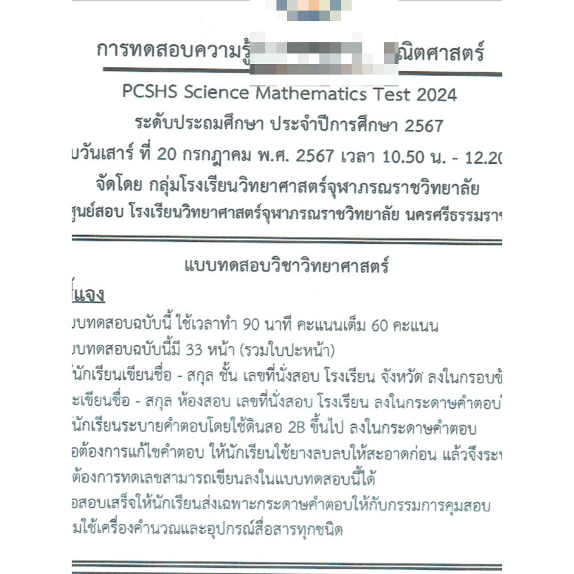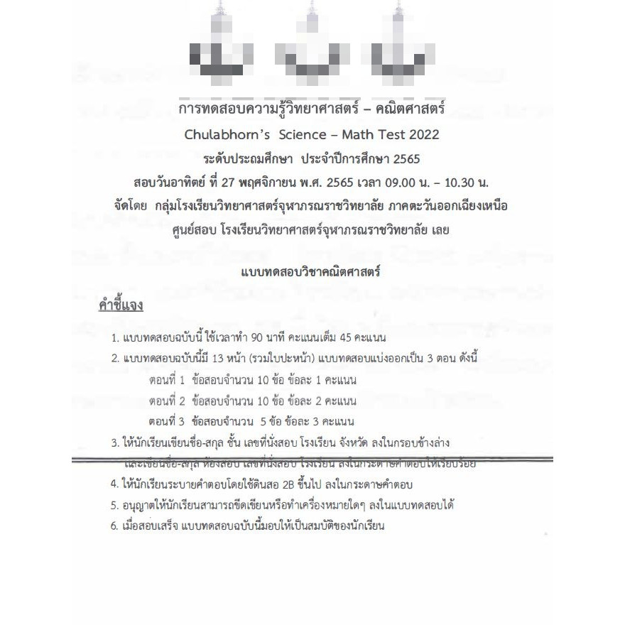 แนวข้อสอบ การทดสอบความรู้วิทยาศาสตร์-คณิต กลุ่มโรงเรียนจุฬาภรณ์