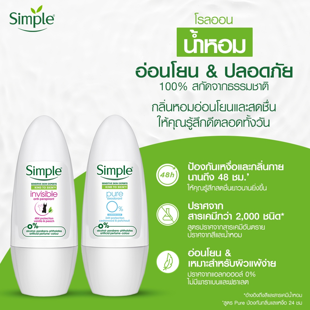Simple ซิมเพิล คายด์ ทู สกิน อินวิซิเบิล แอนตี้-เพอร์สไพแรนท์ วานิลลา แอนด์ พีช