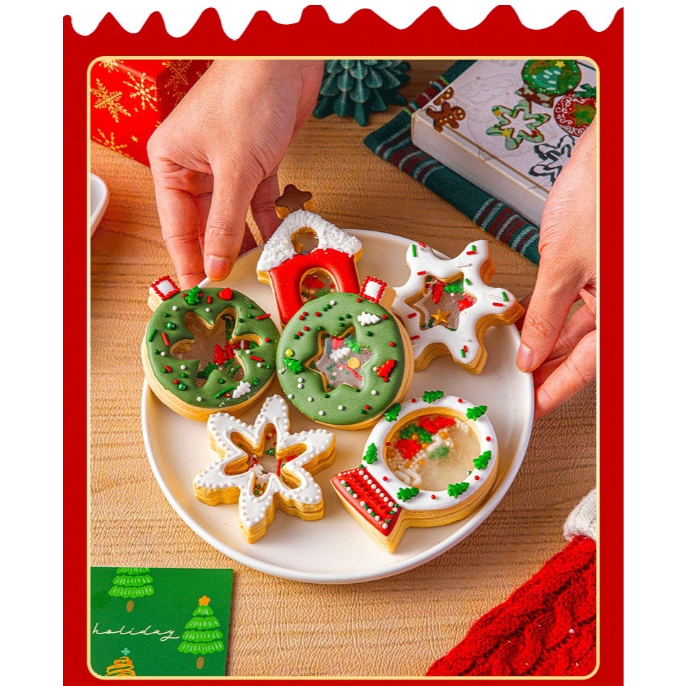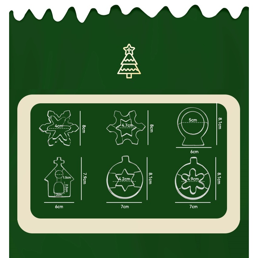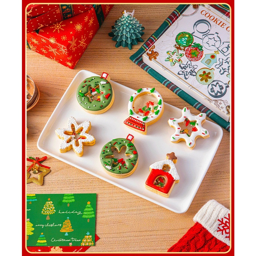 ชุดพิมพ์กดคริสมาสต์ 6ชิ้น พิมพ์กดขนาดใหญ่ Fondant Frosting