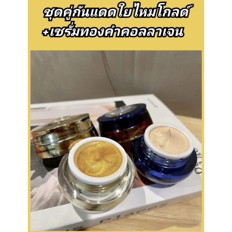 สวยครบเซ็ตด้วยชุดกันแดดใยไหมและเซรั่มทองคำคอลลาเจน ขนาดกระปุกละ 15 กรัมใช้ได้นานเป็นเดือน