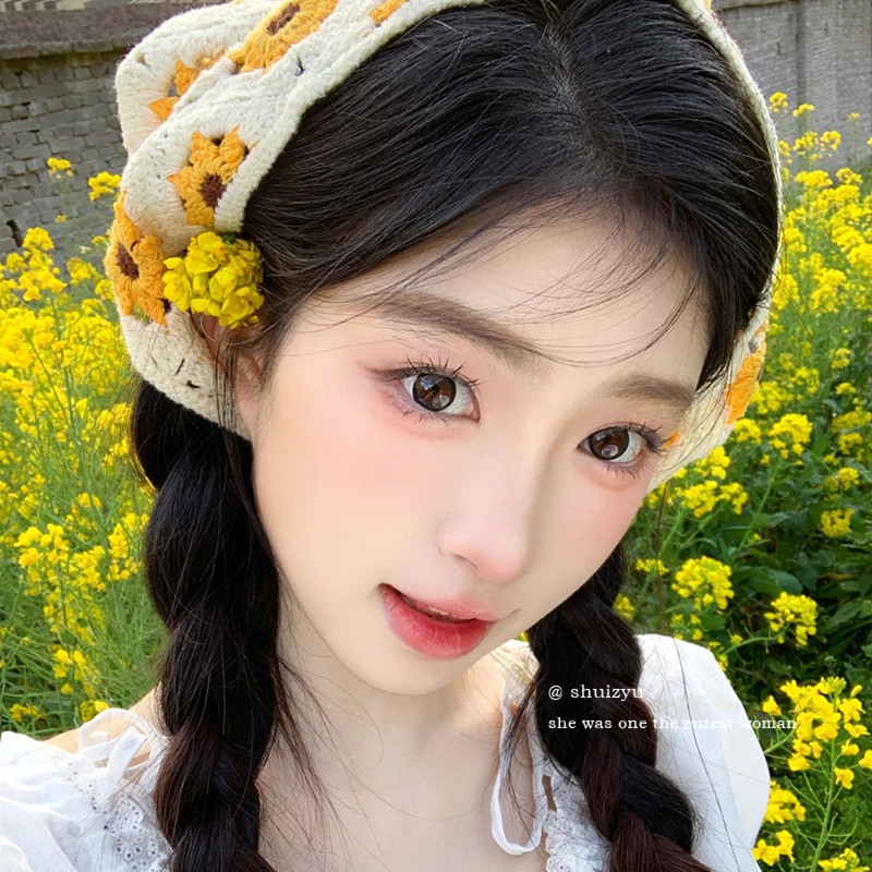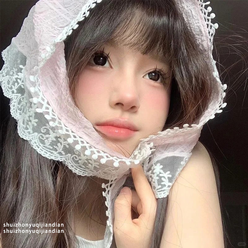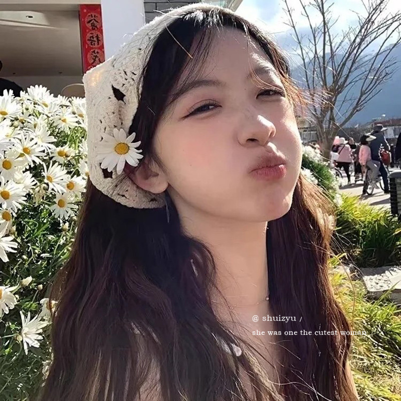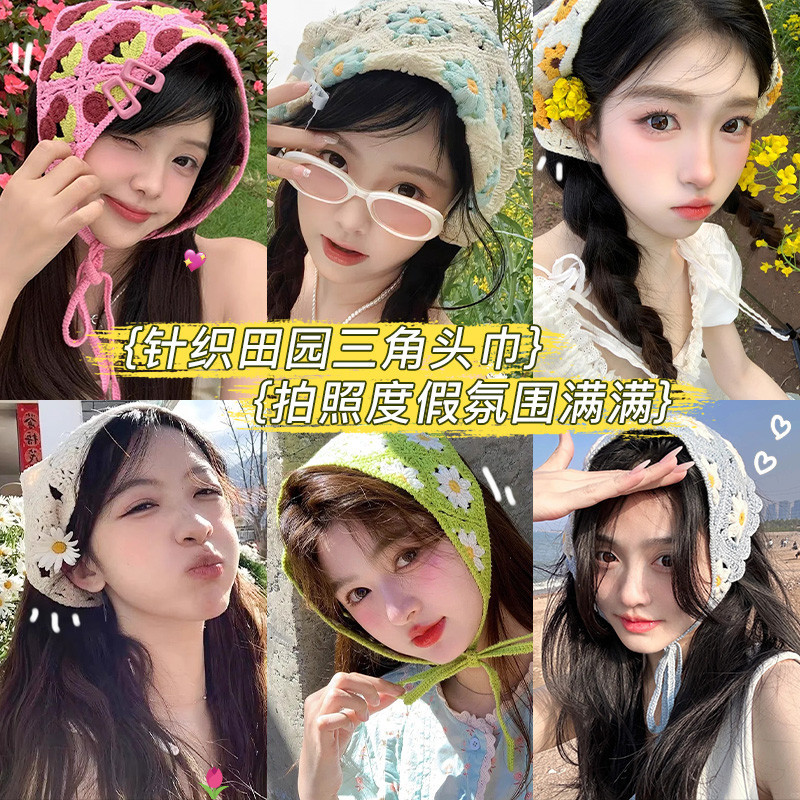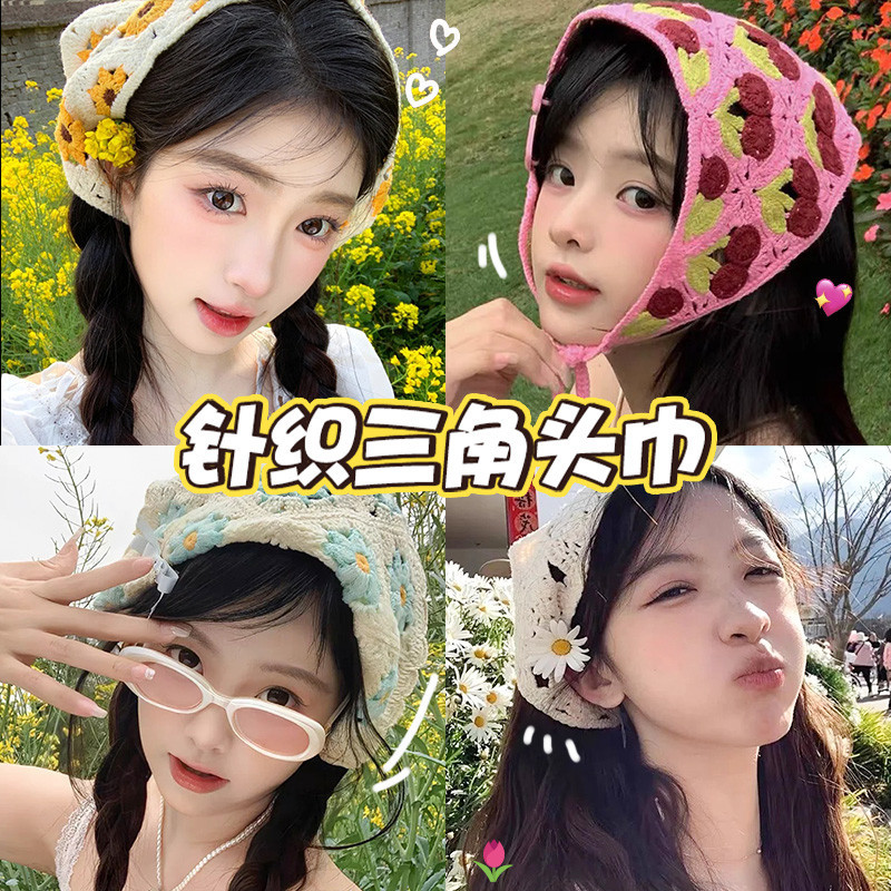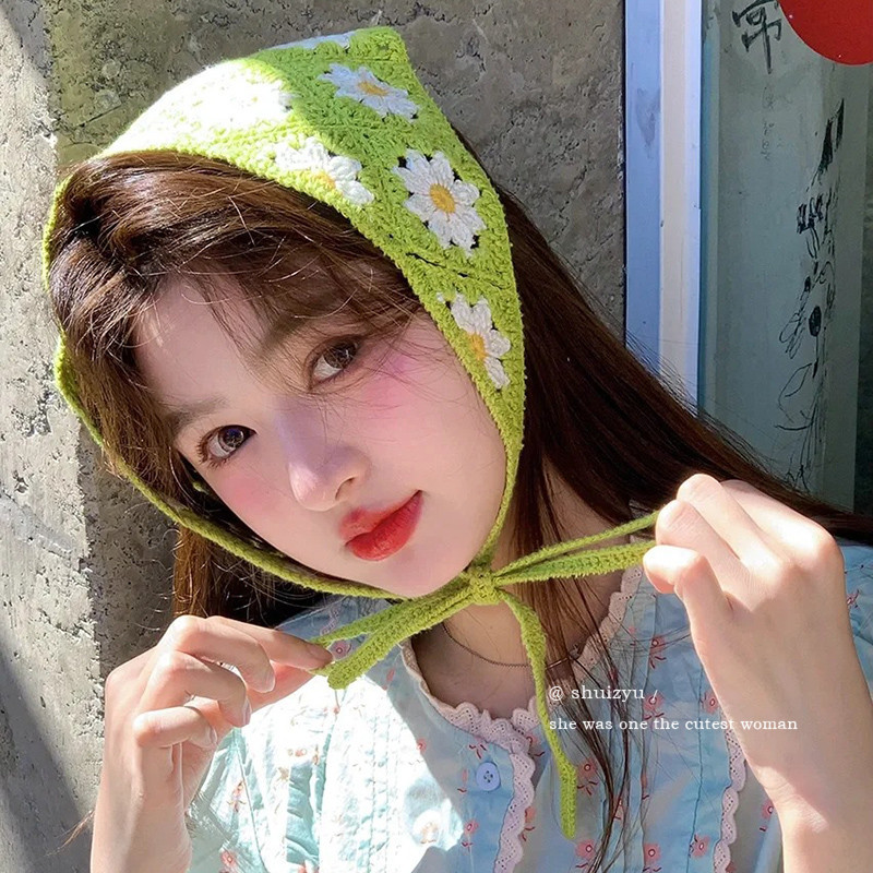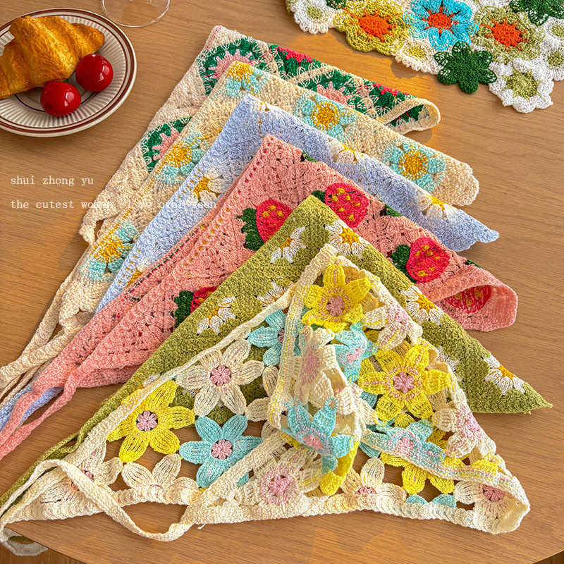 แฟชั่นเกาหลี หวาน พระ Ins สไตล์โครเชต์ กลวง ที่มีสีสัน สามเหลี่ยม ผ้าพันคอ หูฟัง สําหรับผู้หญิง