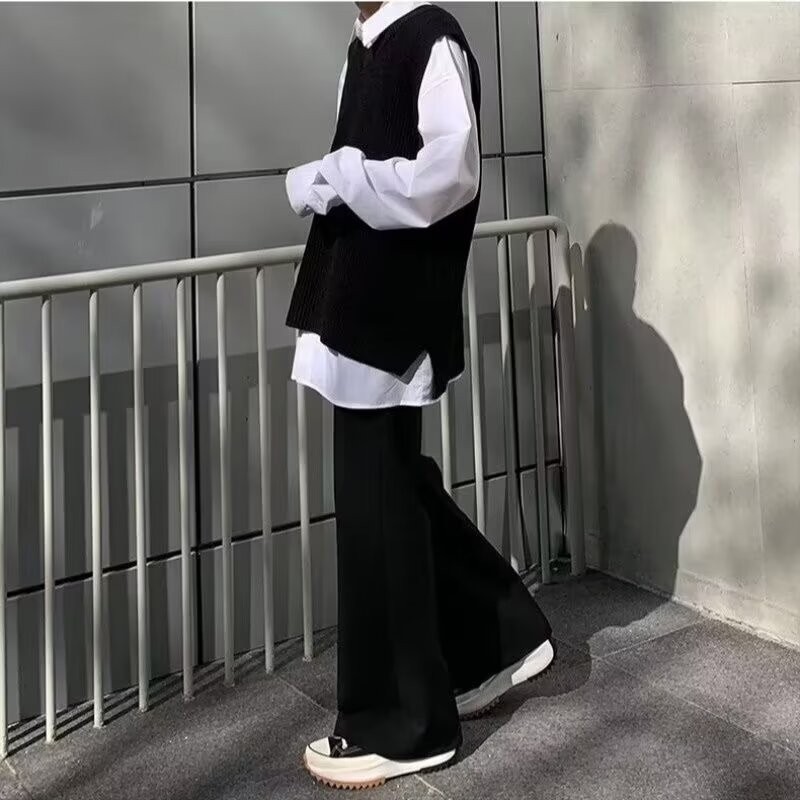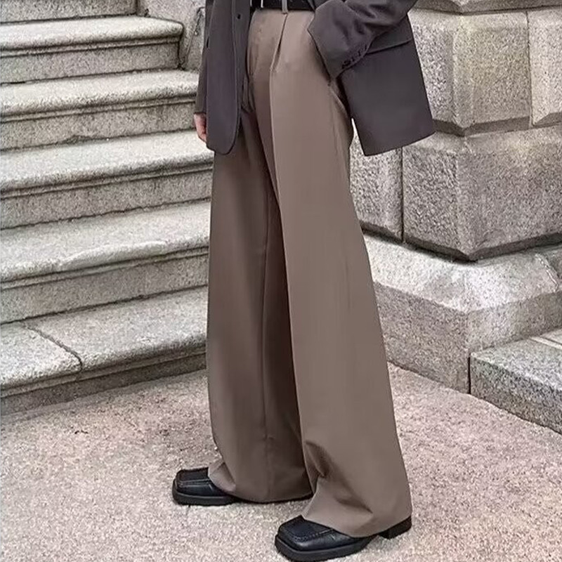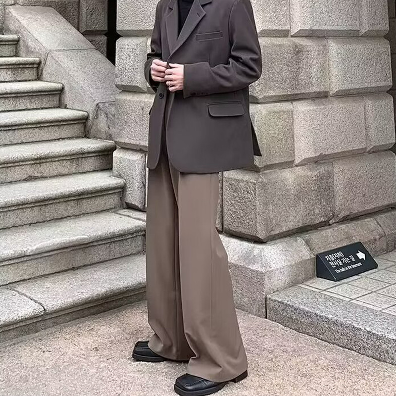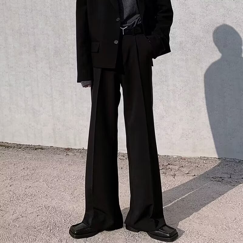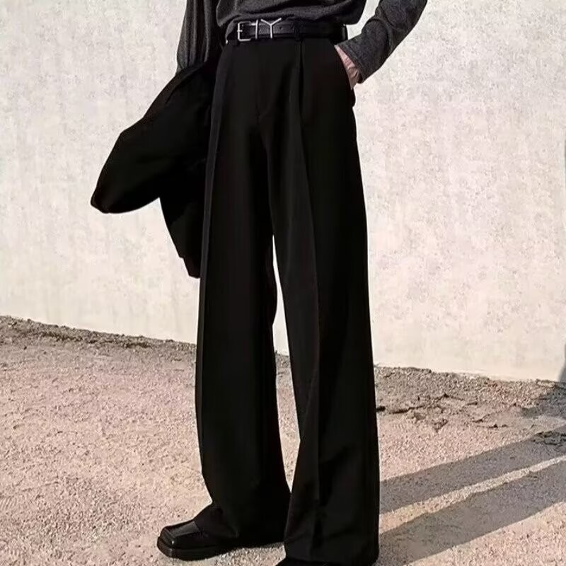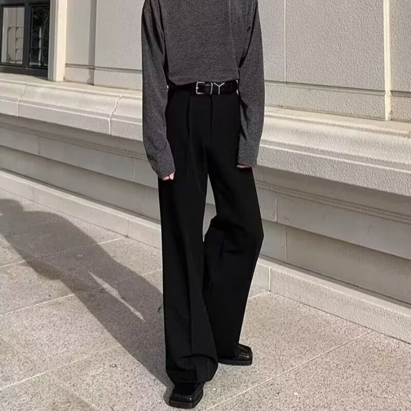 กระแสน้ํา หมี กางเกงสูทผู้ชายใหม่เวอร์ชั่นเกาหลีย้อนยุคสบายๆระดับไฮเอนด์หลวมกระชับเยาวชนคู่แฟชั่นตรงกางเกงขากว้าง