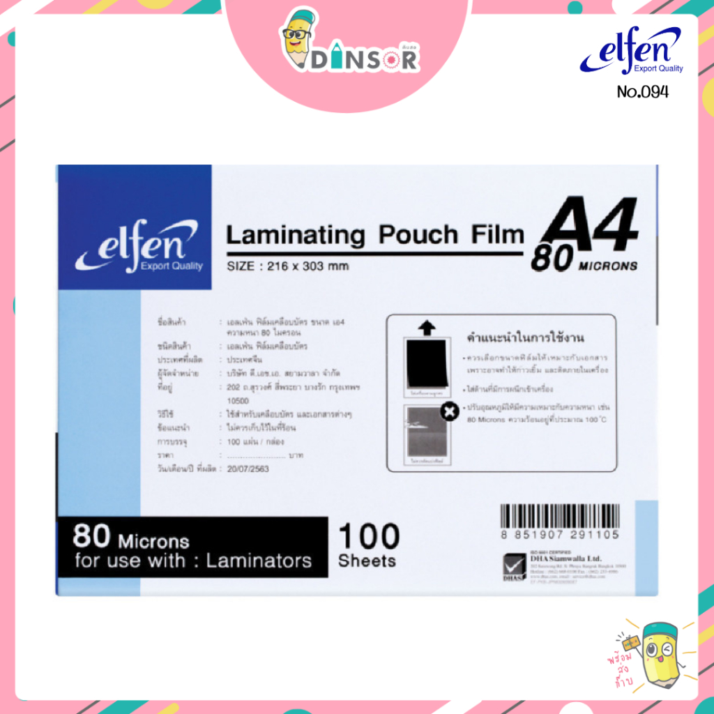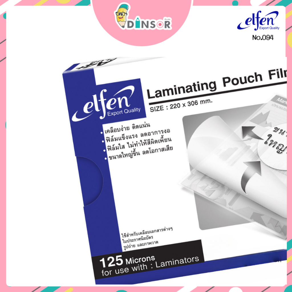 Elfen พลาสติกเคลือบบัตร A4 แผ่นเคลือบบัตร เอลเฟ่น No.094 หนา 125ไมครอน แพค 100แผ่น ซองบัตร US.Station