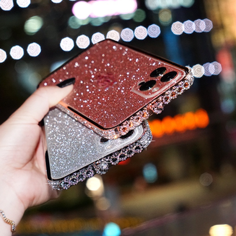 เคสโทรศัพท์มือถือ กรอบโลหะ ประดับเพชรเทียม กลิตเตอร์ สําหรับ iPhone 15 14 13 Promax 12 11Pro 12Pro 13 Pro
