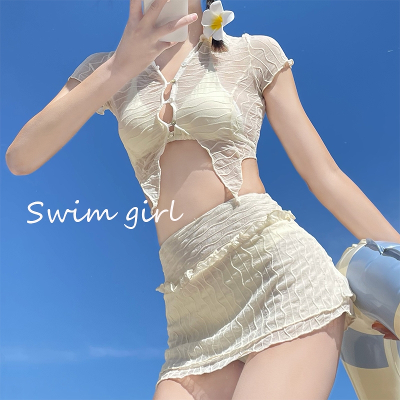 swim girlชุดว่ายน้ํา 3 ชิ้น ชุดว่ายน้ำผู้หญิง กระโปรง ผ้าแห้งเร็วบางเฉียบ พร้อมส่งที่ไทยครับ#0146