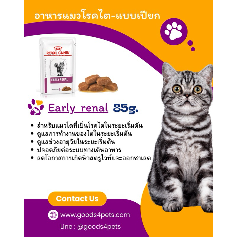 (หมดอายุ : 02/01/2027) royal canin อาหารแมวโรคไตระยะเริ่มต้น early renal 85 กรัม (1 ซอง)
