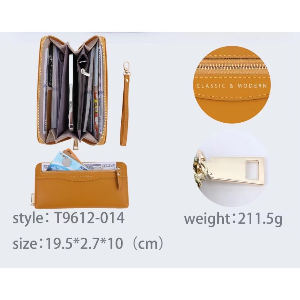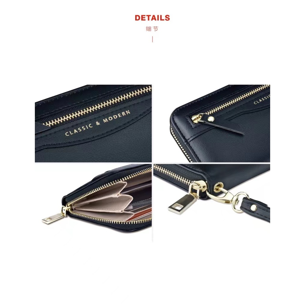 [พร้อมส่งในไทย]กระเป๋าสตางค์ classic&modernกระเป๋าสตางค์ผู้หญิงใบยาวซิปล็อคใส่แบงค์พันได้มีซิปใส่เหรียญมีสายรัดข้อมือ014