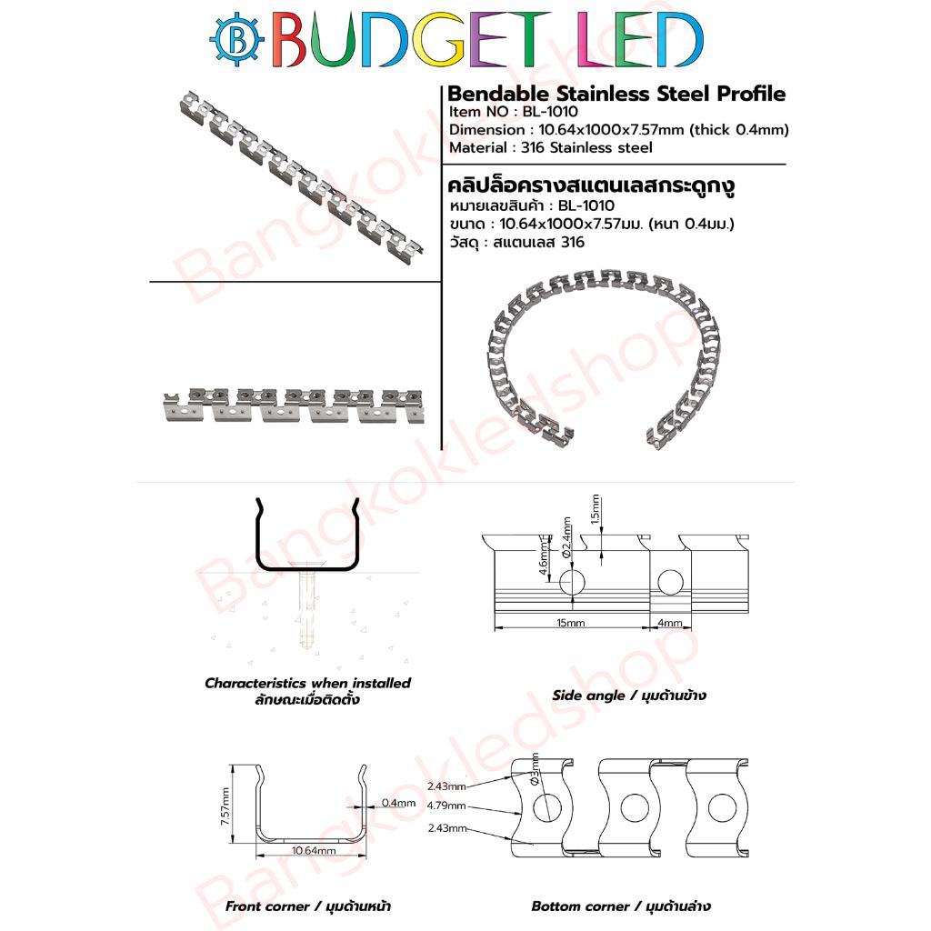 คลิปล็อครางสแตนเลสกระดูกงู รุ่น BL-1010 1M สำหรับราง LED NEON FLEX