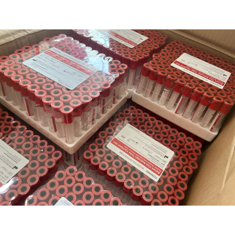 หลอดเก็บเลือดสีแดงขนาด 4 มิลลิลิตร ใช้เก็บเลือดในงานไบโอเคม