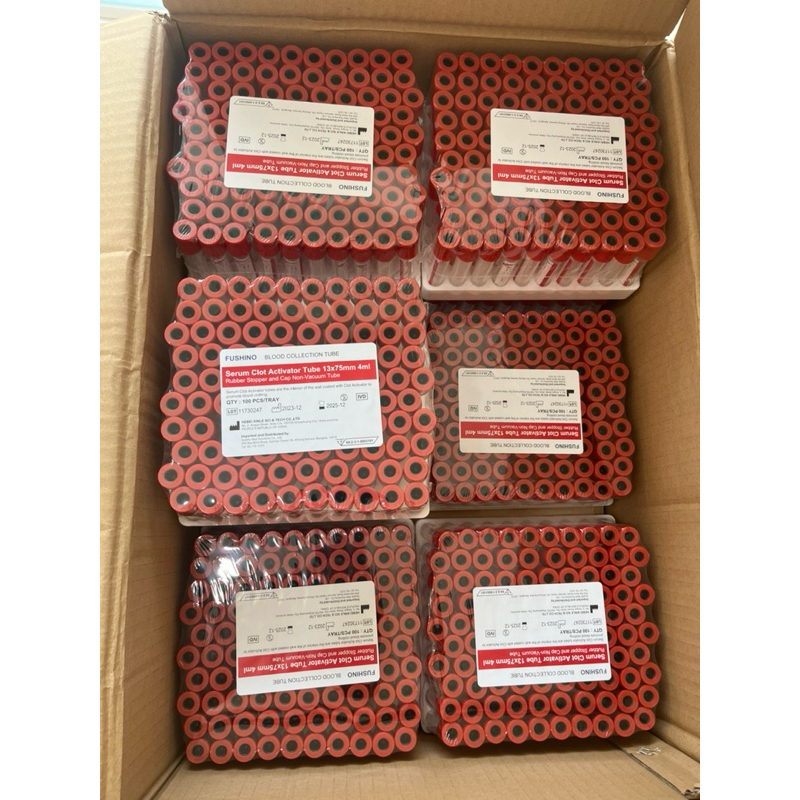 Clot Activator Non-Vacuum Tube หลอดบรรจุสิ่งส่งตรวจ ขนาด 4 mL. Size 13x75 mm., 100 ชิ้น/เเพ๊ค