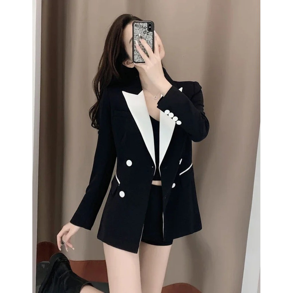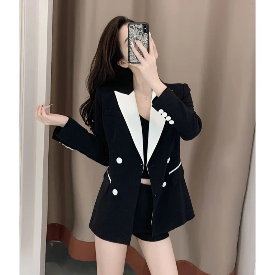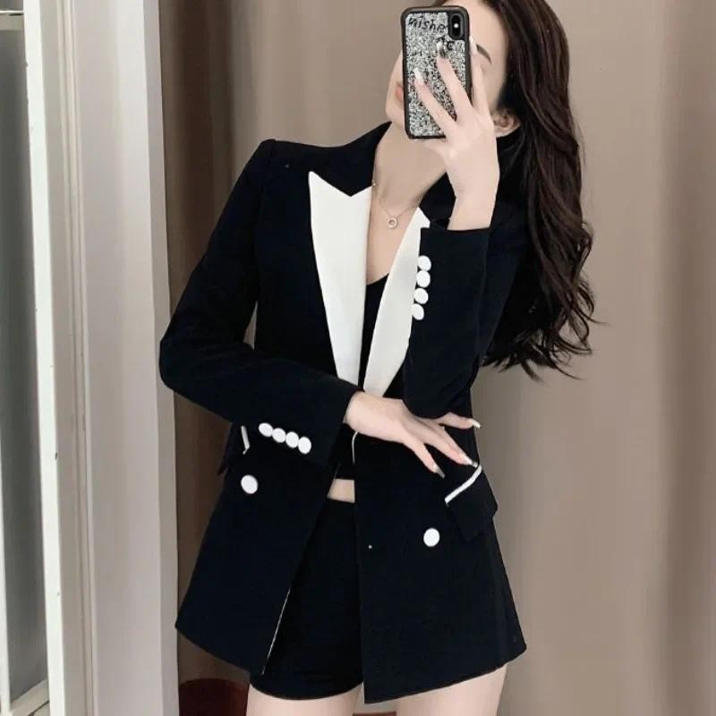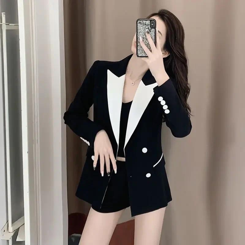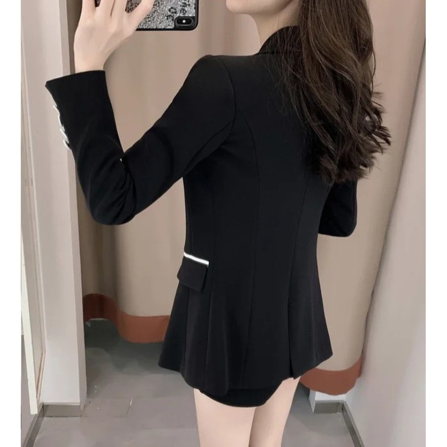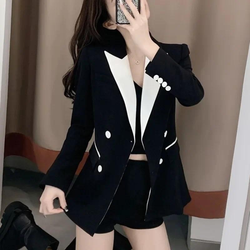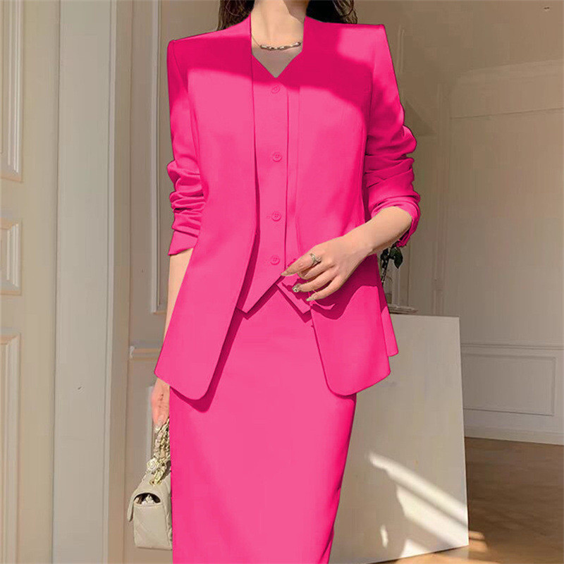 ขนาดใหญ่ขนาดสูทสูทผู้หญิงฤดูใบไม้ผลิฤดูใบไม้ร่วง ผอมลง ดูหลวมสบายๆพร็อพมืออาชีพสวมใส่อารมณ์สูทสูท+กระโปรงสองชิ้นชุดผู้หญิง