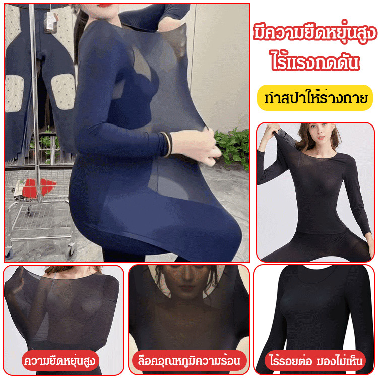 ?ของแท้ 100%?【เสื้อลองจอนให้ความอบอุ่นใน 3 วินาที】พลัสไซซ์ ชุดชุดชั้นในระบายความร้อนที่เหมาะกับผิว/กางเกงชั้นในเก็บอุณหภูมิแบบบางยืดหยุ่นสูง