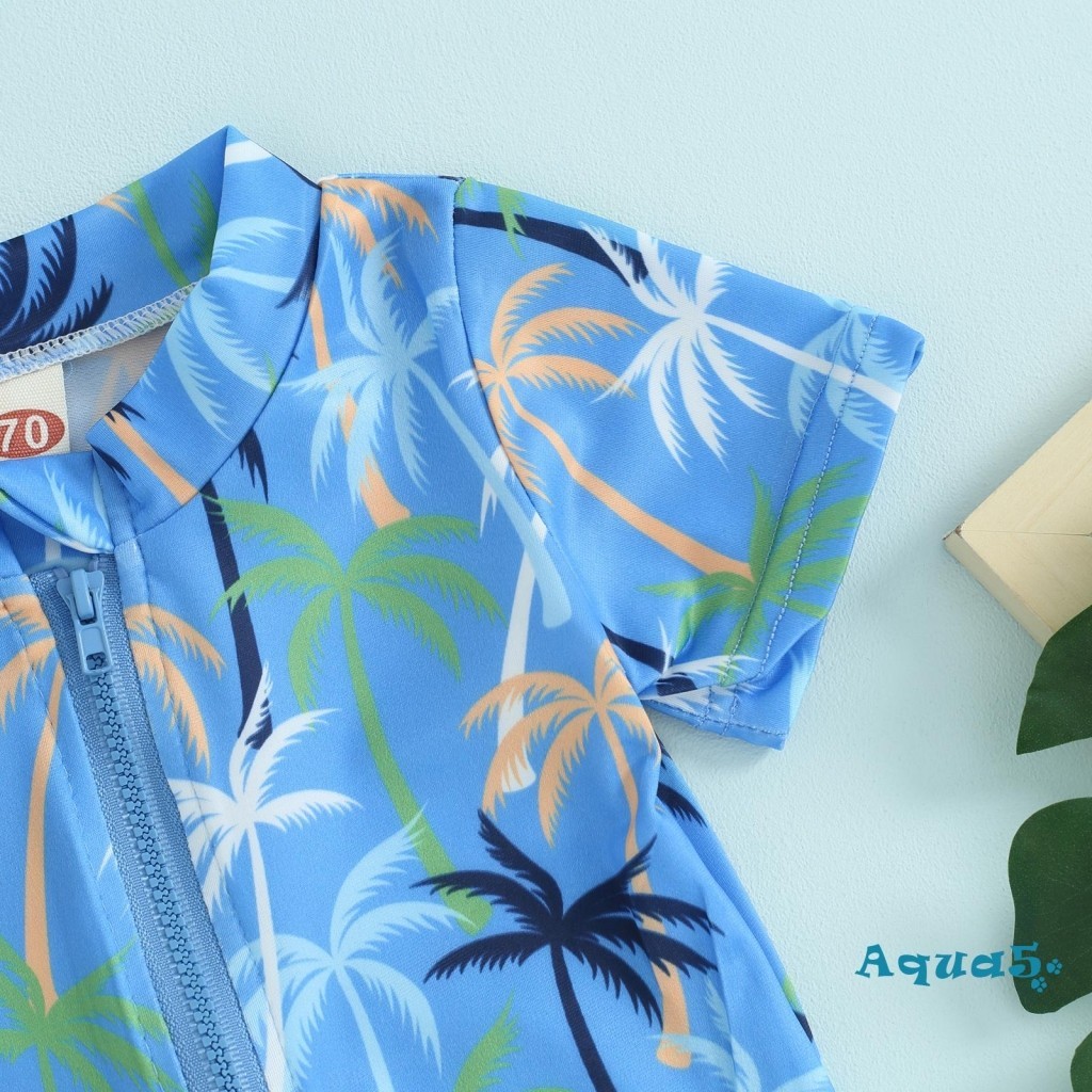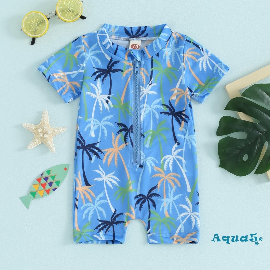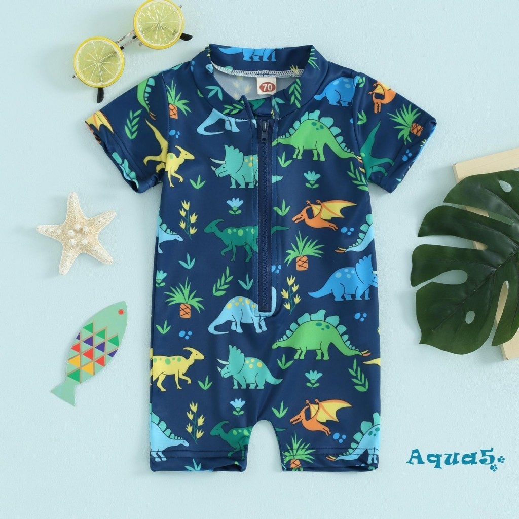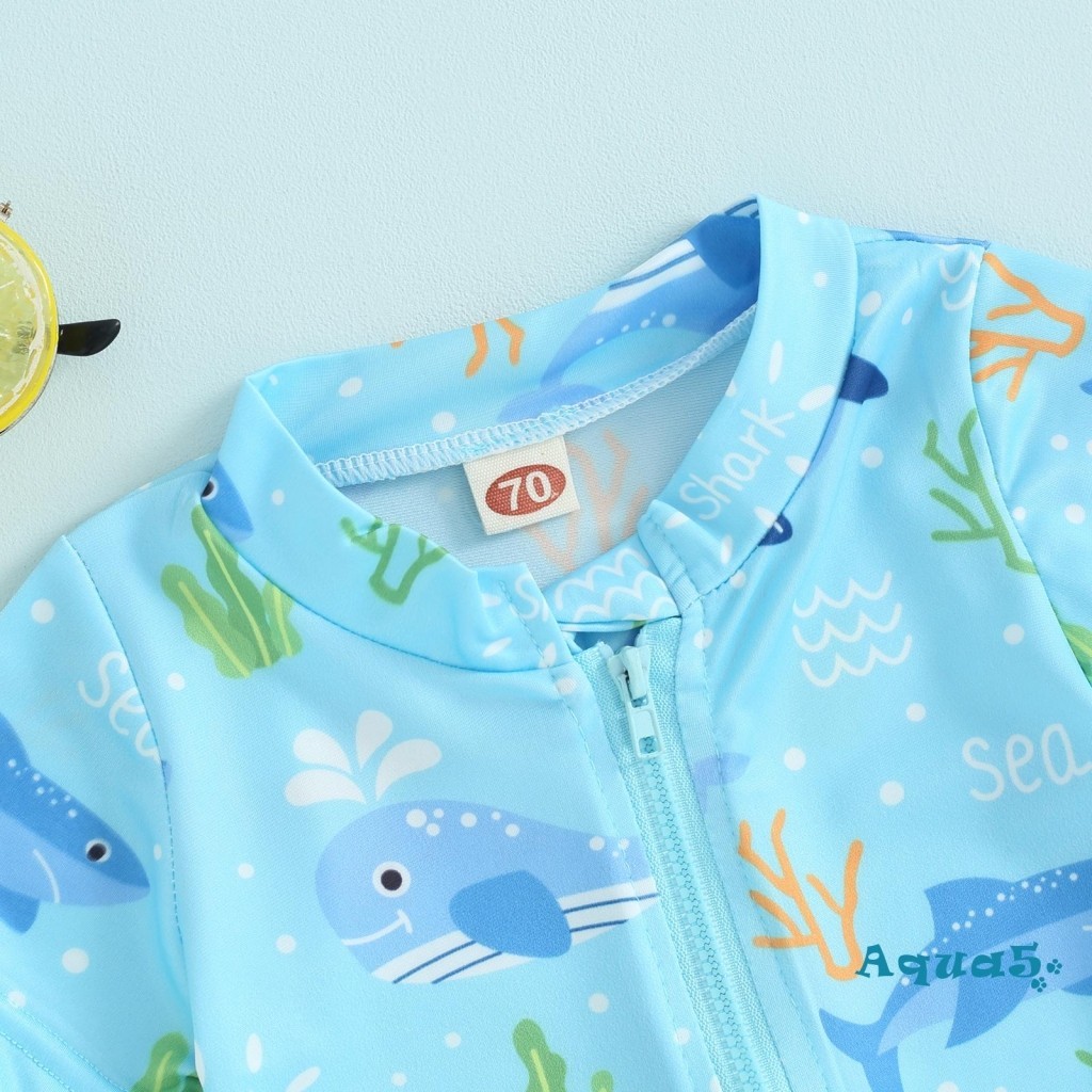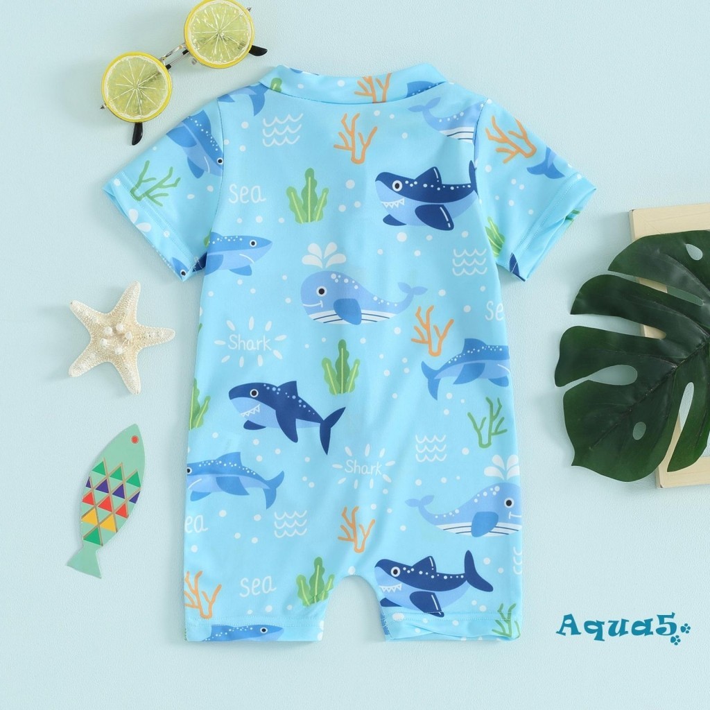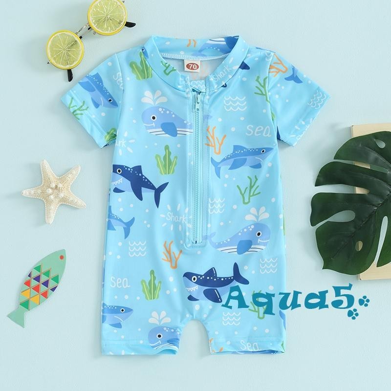 Aqq- ชุดว่ายน้ํา เด็กผู้ชาย ผื่น การ์ด ชุดว่ายน้ํา น่ารัก พิมพ์ลาย แขนสั้น ซิปด้านหน้า ชุดว่ายน้ํา