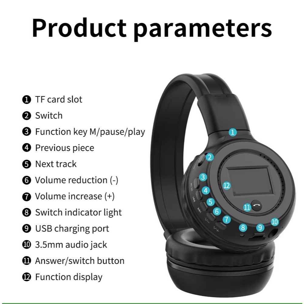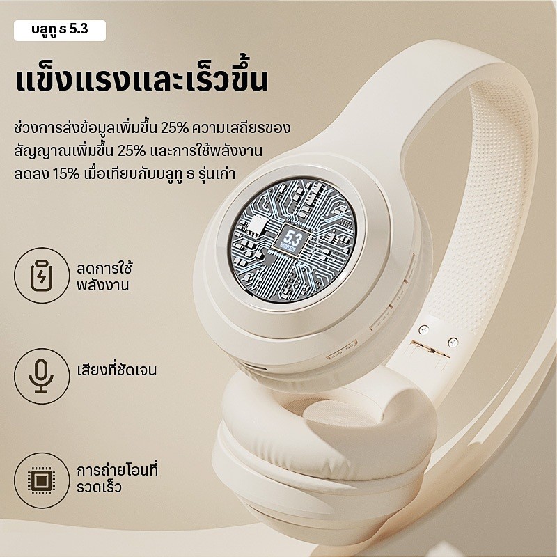 Zealot B570 หูฟังบลูทูธชุดหูฟังไร้สายไฮไฟสเตอริโอเบสหน้าจอ LCD การ์ด Micro SD พร้อมไมโครโฟน