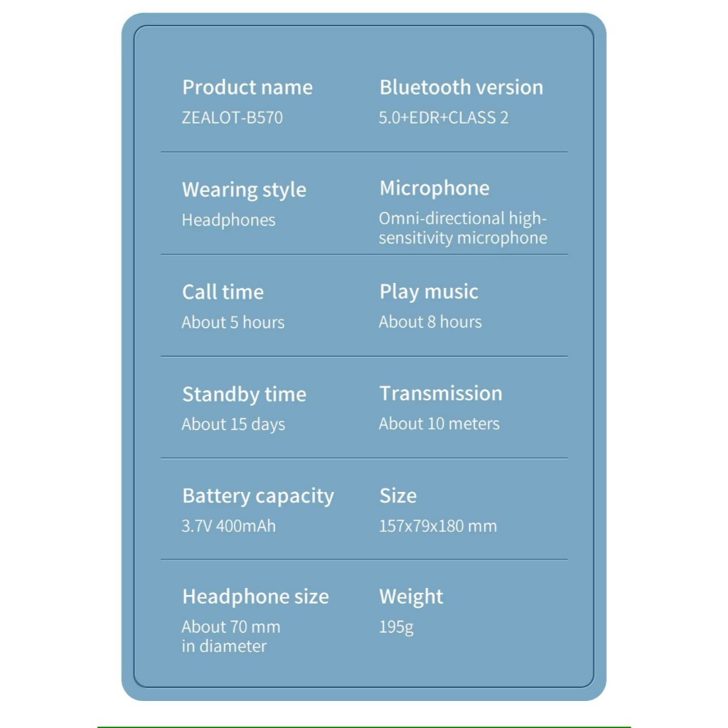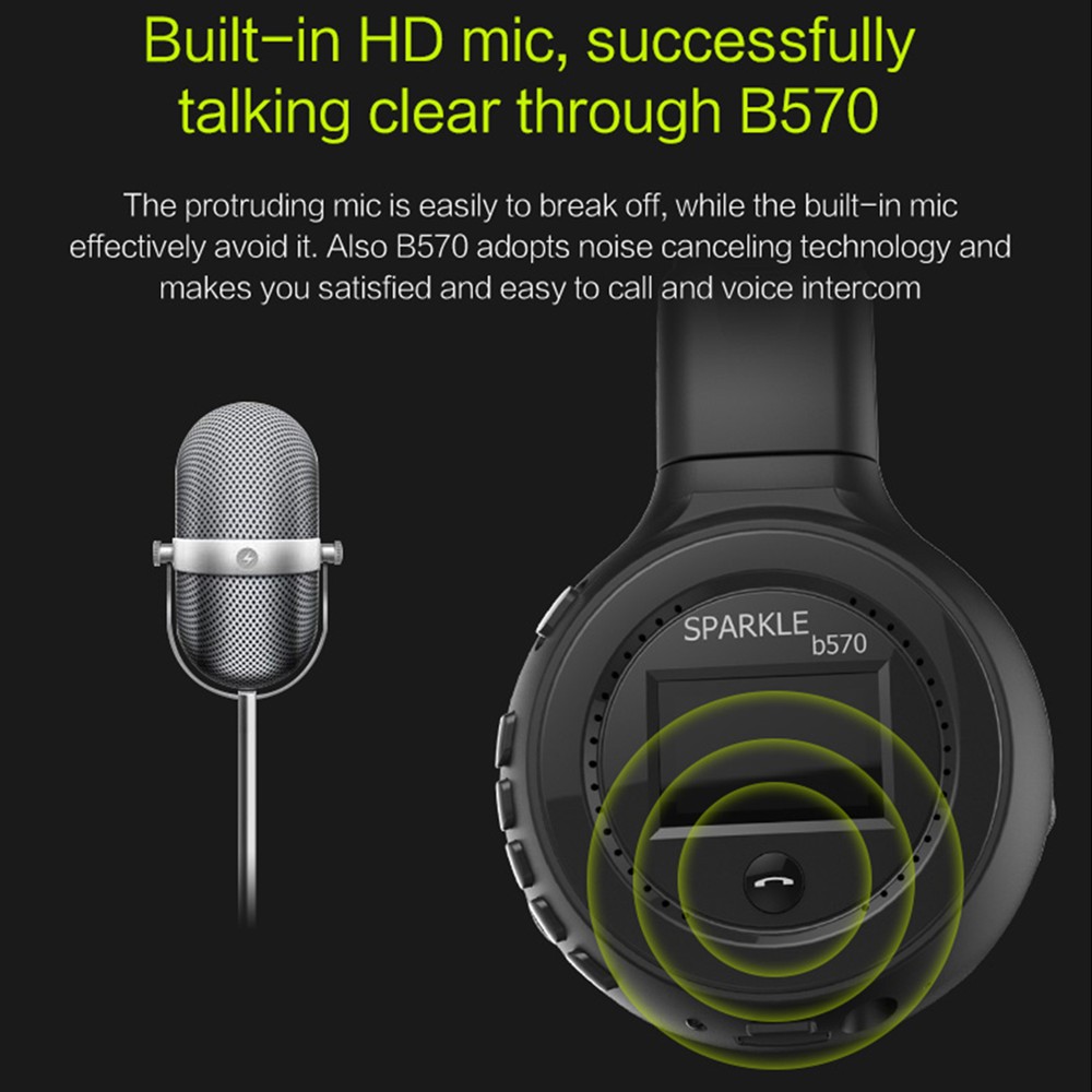 หูฟังไร้สาย ZEALOT B570 หูฟังไร้สายไฮไฟสเตอริโอเบสหน้าจอ LCD Micro SD Card พร้อมไมโครโฟน