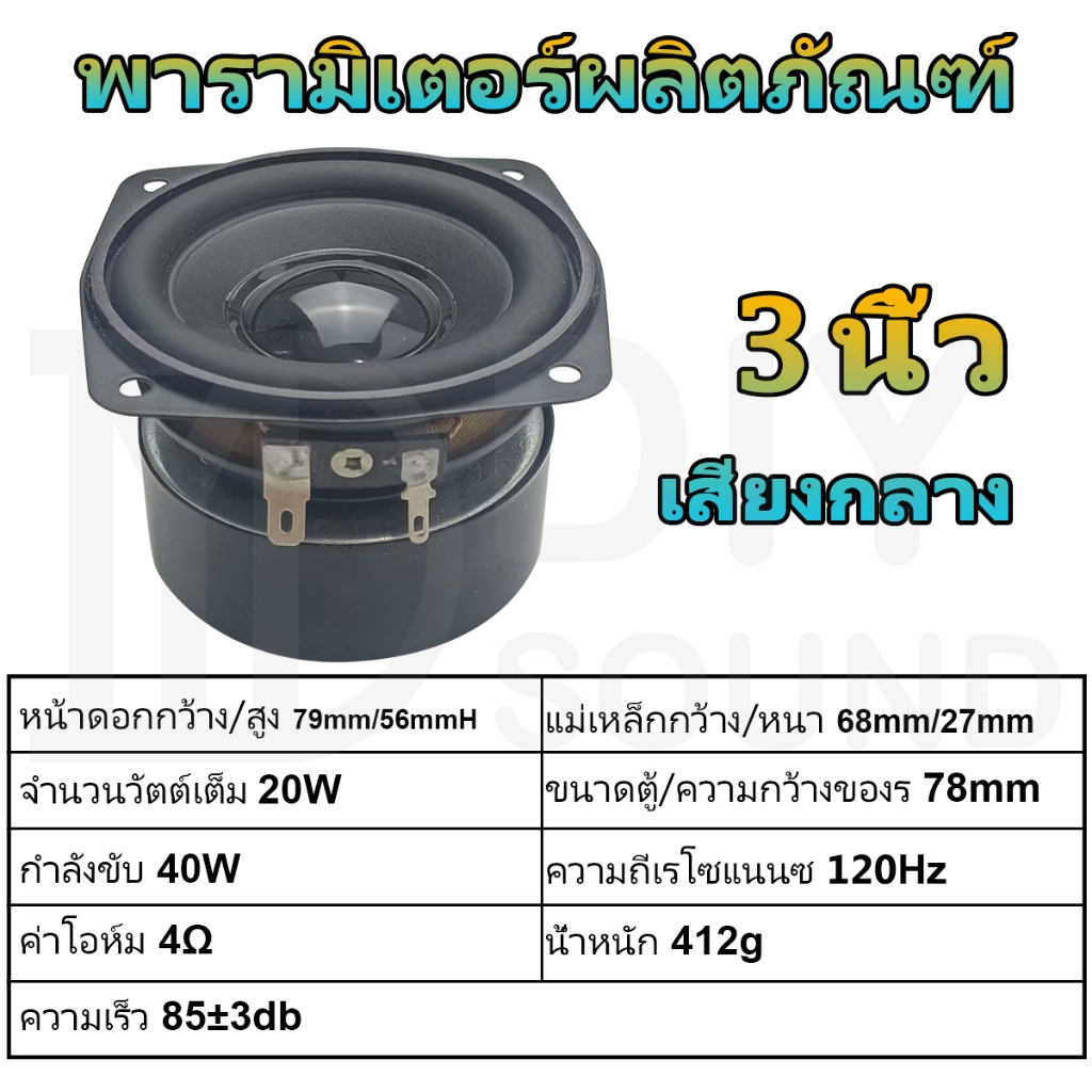 DIYsound 1 ดอก ดอกลำโพงมิดเรนจ์ 3 นิ้ว 4Ω 20W ลำโพงเสียงกลาง 3 นิ้ว ใช้กับตู้ลำโพงบลูทูธ และเครื่องเสียงบ้านทุกประเภท