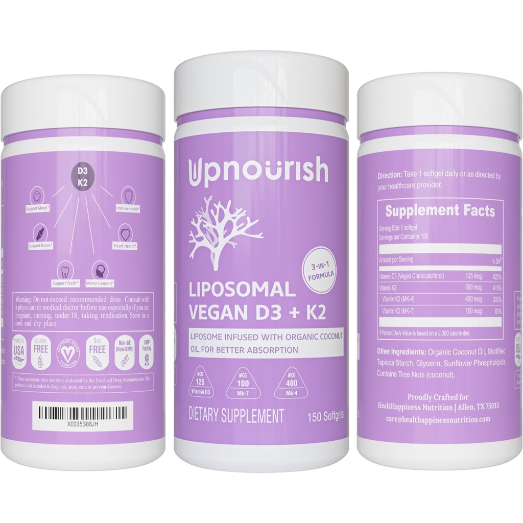 พร้อมส่ง✨ UpNourish D3 + K2 Vegan Vitamin D3 5000 IU K2 MK4 MK7 500 mcg 150 Softgels