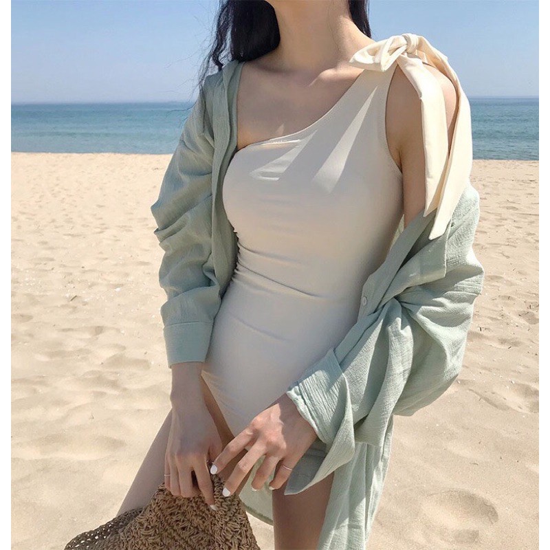ด้วยลำตัวว่ายน้ำเอวสูงเสื้อเกาะอกพร้อมแผ่นซับน้ำนมและไม่มีสายบิกินี่แบบแย