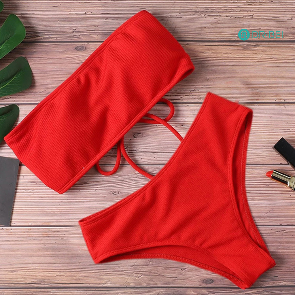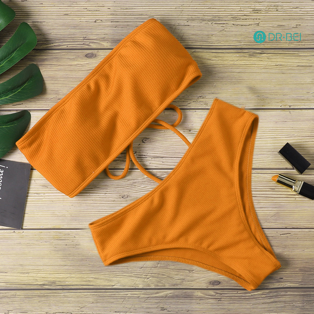 Dr.bei ชุดว่ายน้ําบิกินี่ เอวสูง สองชิ้น พร้อมแผ่นปิดหน้าอก สีพื้น สําหรับผู้หญิง 1 ชุด
