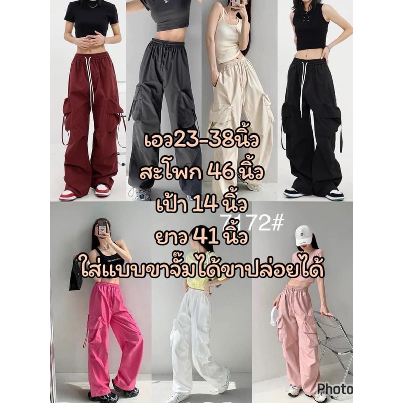 กางเกงคาร์โก้ขากระบอก เนื้อผ้า ผ้าร่มผสม ผ้าไม่ยืด แต่งกระเป๋าข้าง ปลายขาปล่อยได้ขาจั๊มได้ ฟรีไซส์ ทรงกระบอกใหญ่ เอวสูง รุ่นขายดี ขนาดไซส์ เอว 23-38 นิ้ว สะโพก 46 นิ้ว เป้า 14 นิ้ว รอบต้นขา 28 นิ้ว ยาว