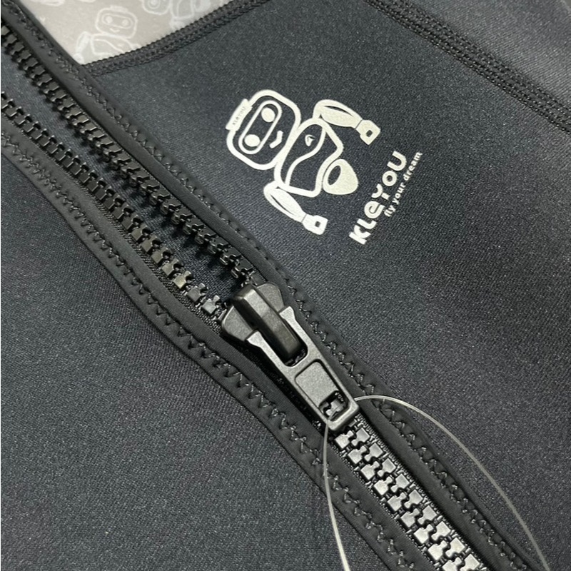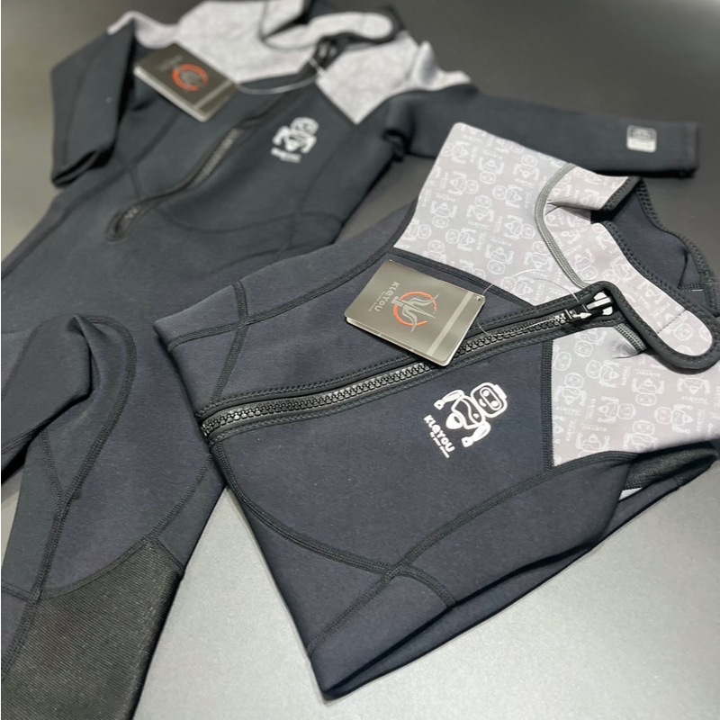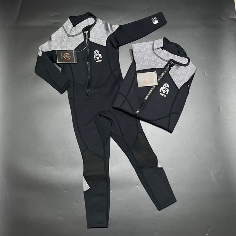 มาโทนดำ เรียบ เท่ ผ้าหนาเก็บความอบอุ่นได้เป็นบอดี้สูทตัวยาวแขนยาว ปกป้องผิวจากรอยขูดขีดหรือสัตว์ใต้ทะเล รุ่นนี้เป็นซิปหน้าให้ลูกสามารถถอดชุดได้เอง