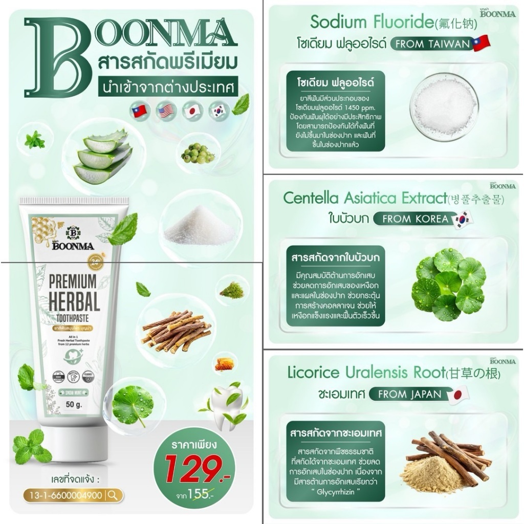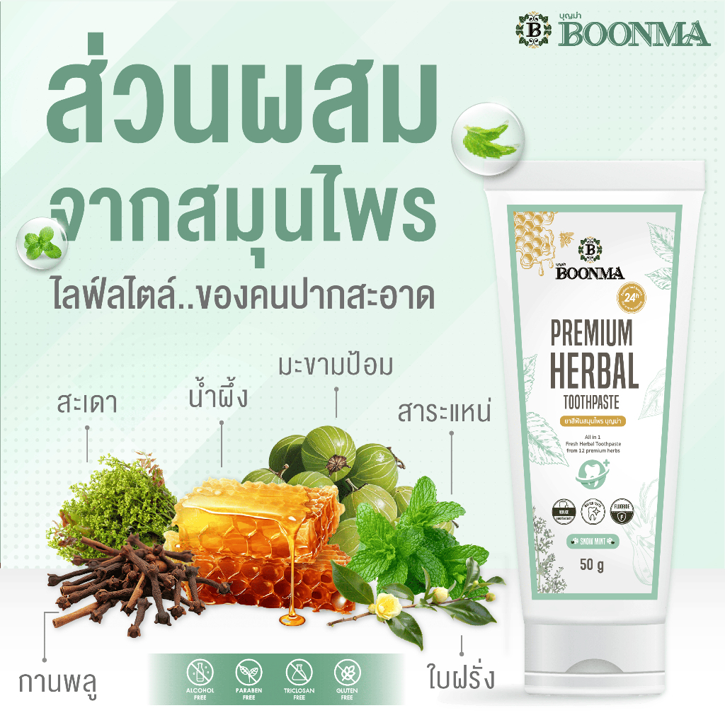 ยาสีฟันสมุนไพรบุญม่า (Boonma) เคลียร์ทุกปัญหาช่องปาก จากสูตรลับของอาม่า