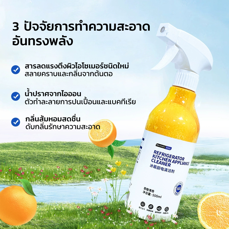 GRAREY น้ำยาทำความสะอาดครัว ตู้เย็น คราบน้ำมัน น้ำยาทำความสะอาดเตาอบ ไมโครเวฟ ขนาด 500ml กลิ่นส้ม