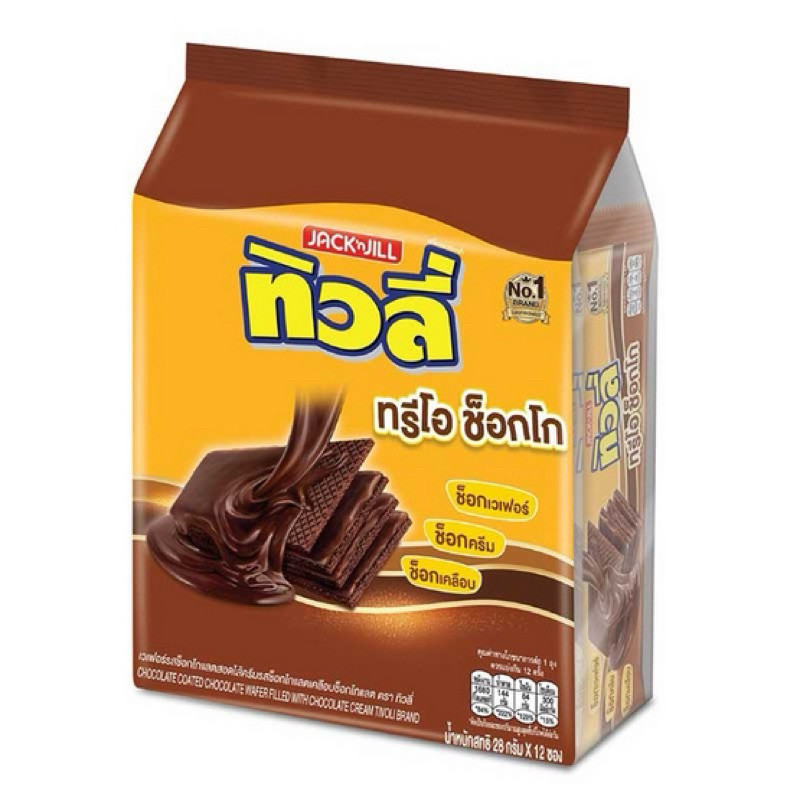 ทิวลี่ จัมโบ้/คอมโบ้ (รุ่น 5บ.) เวเฟอร์สอดไส้ครีมกลิ่นวนิลาเคลือบช็อกโกแลต แพค30-35ก.x12ซอง [ขนม]