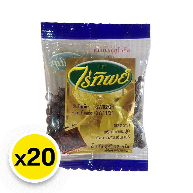 - พริกไทยดำเม็ด (Black Pepper) ตราไร่ทิพย์ (12 กรัม) 20 ซอง แบบแผง