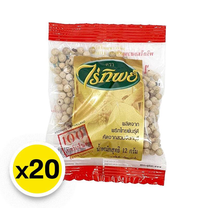 - พริกไทยขาวเม็ด (White Pepper) ตราไร่ทิพย์ (12 กรัม) 20 ซอง แบบแผง